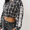 The Appliqué Shrunken Flannel Hoodie Top serves cool girl vibes from every angle. This cropped fit features a zipper-front closure, adjustable drawstrings at the hem, stitched horseshoes on the chest pockets, and branded appliqués on the sleeve.