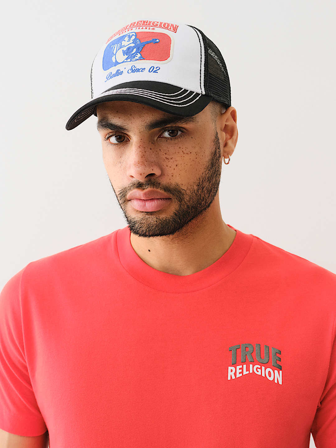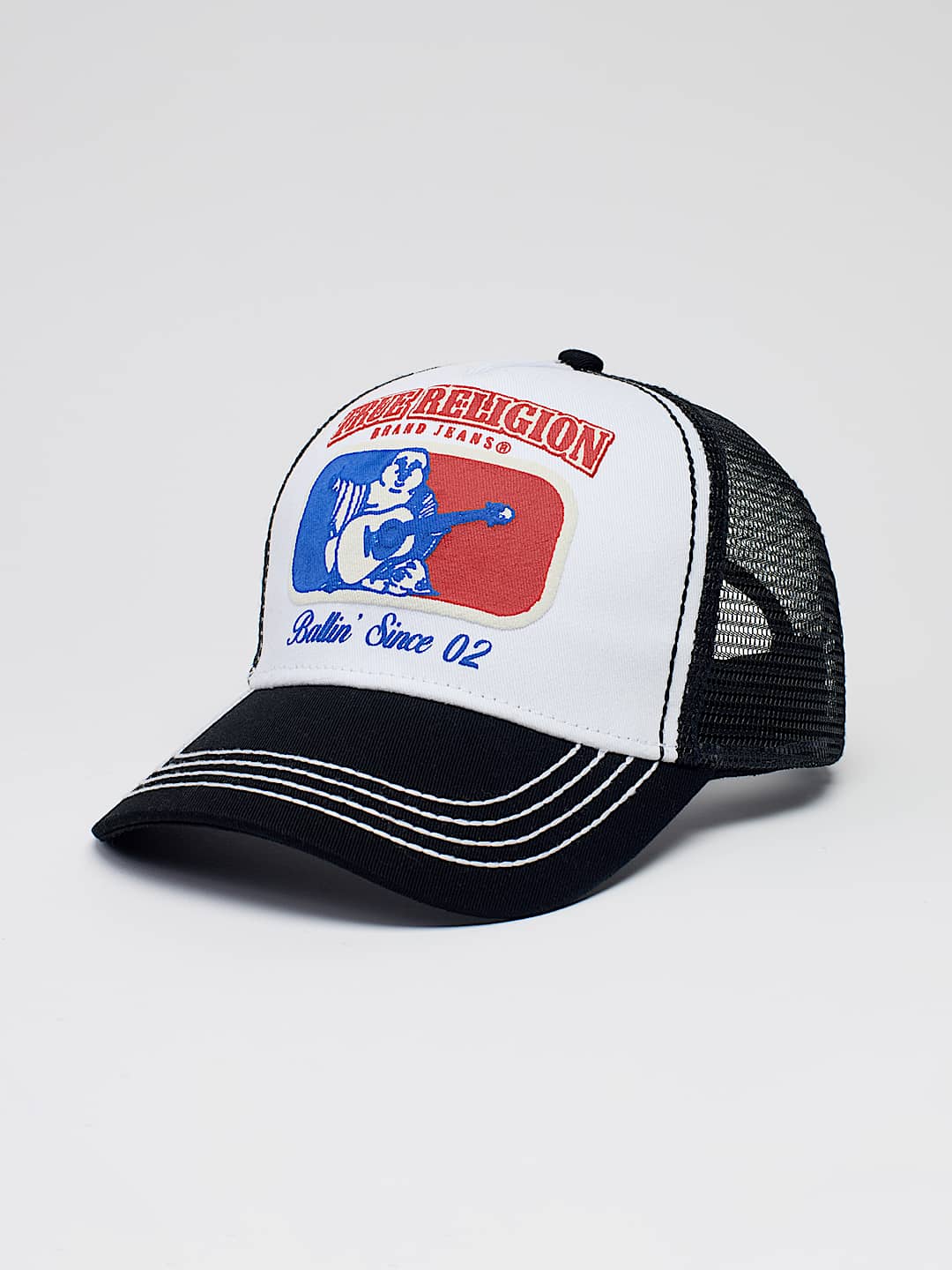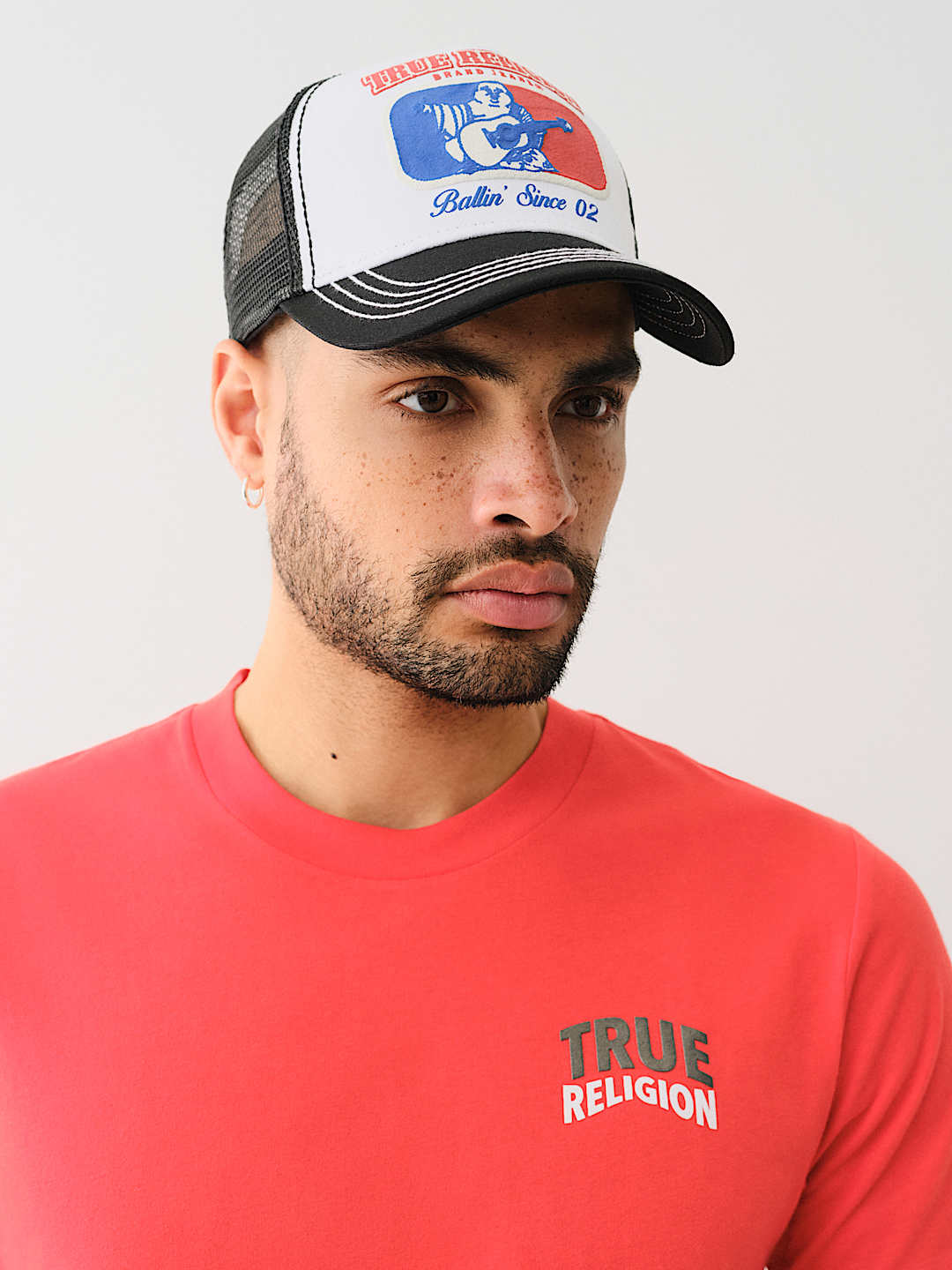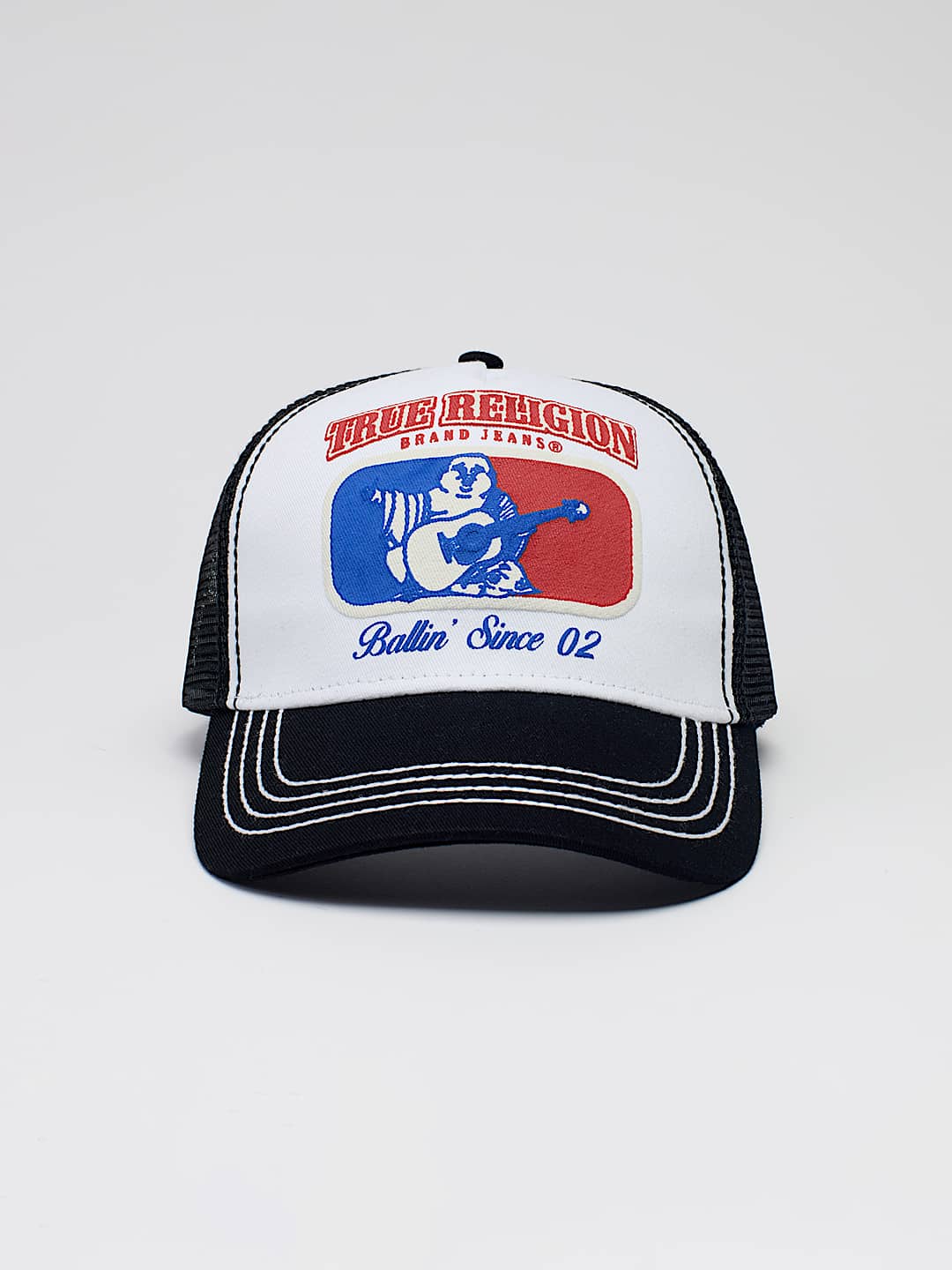 Top off any fit with the Ballin’ Since 02 Trucker Hat. This trucker hat features a mesh back, curved brim, and an adjustable back strap. Complete with a Buddha patch and logo text.