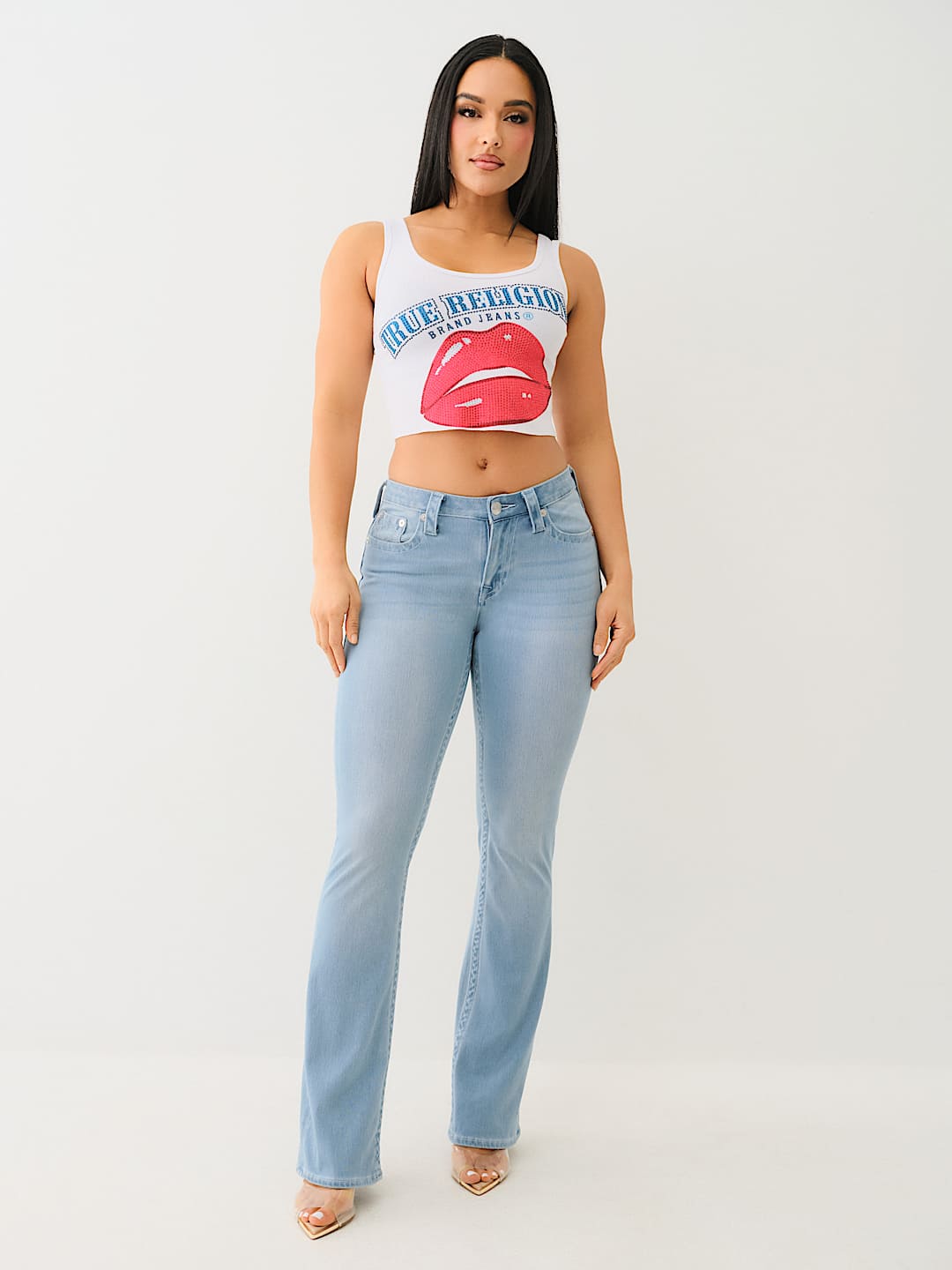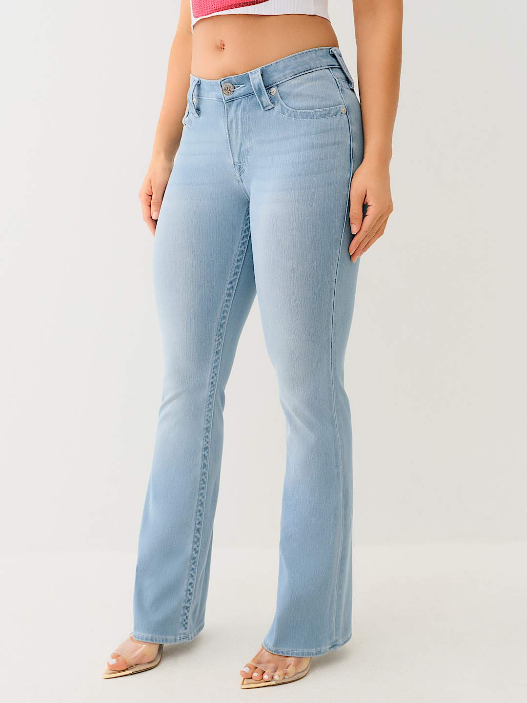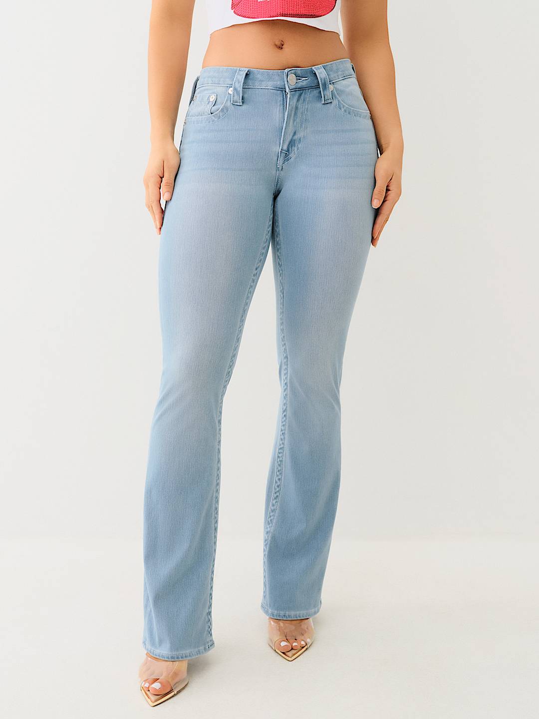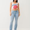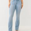 The Becca Indigo Terry Mid Rise Bootcut Jean is your new True favorite. Crafted in a knit terry blend to provide more stretch and comfort, this pair of women’s jeans features a zip fly, belt loops, light whiskering, and a mid-rise waist. Complete with single needle stitching and horseshoe detailing on the back pockets.