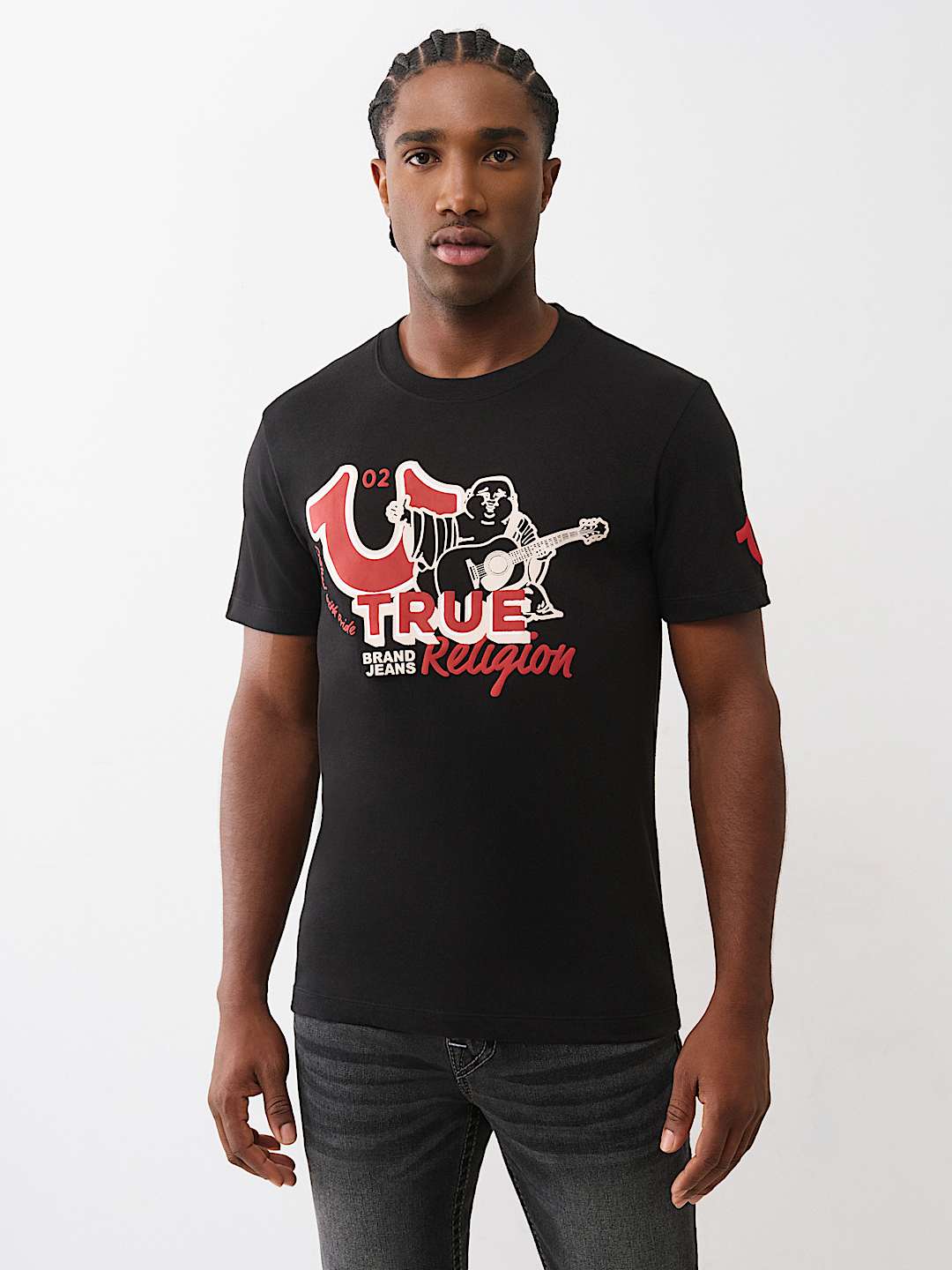 Our signature style becomes an everyday go-to with The Big Horseshoe Buddha Tee. This 100% cotton T-shirt features all of our logos in one—so you can be a True icon every day.