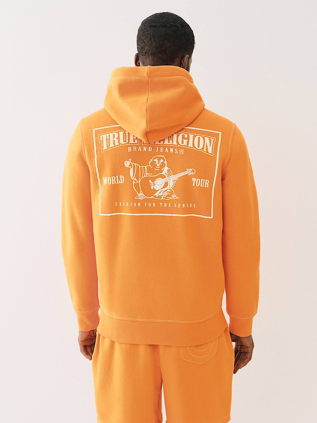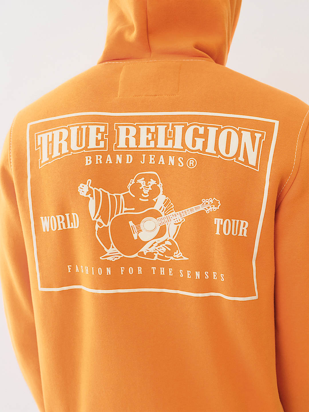 Chill-out the True way with the Big T Zip Hoodie. Fleece-lined and crafted from a soft cotton blend, this hoodie features a zip-up front, split kangaroo pocket, drawstring hood, and our iconic Big T stitching. Complete with a horseshoe logo applique on the front and a World Tour Buddha print logo on the back.
