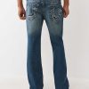 The Billy Bandana Horseshoe Bootcut Jean adds swagger to a timeless fit. Relaxed with a slight flare at the hem, these jeans feature exaggerated whiskering, single-needle stitching, and embroidered bandana-print horseshoes on the back pockets.