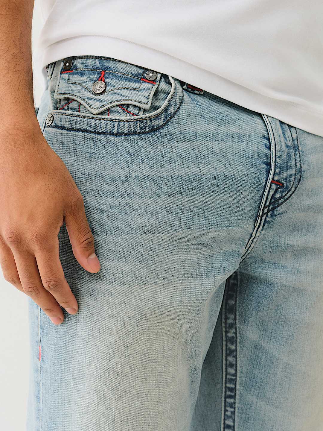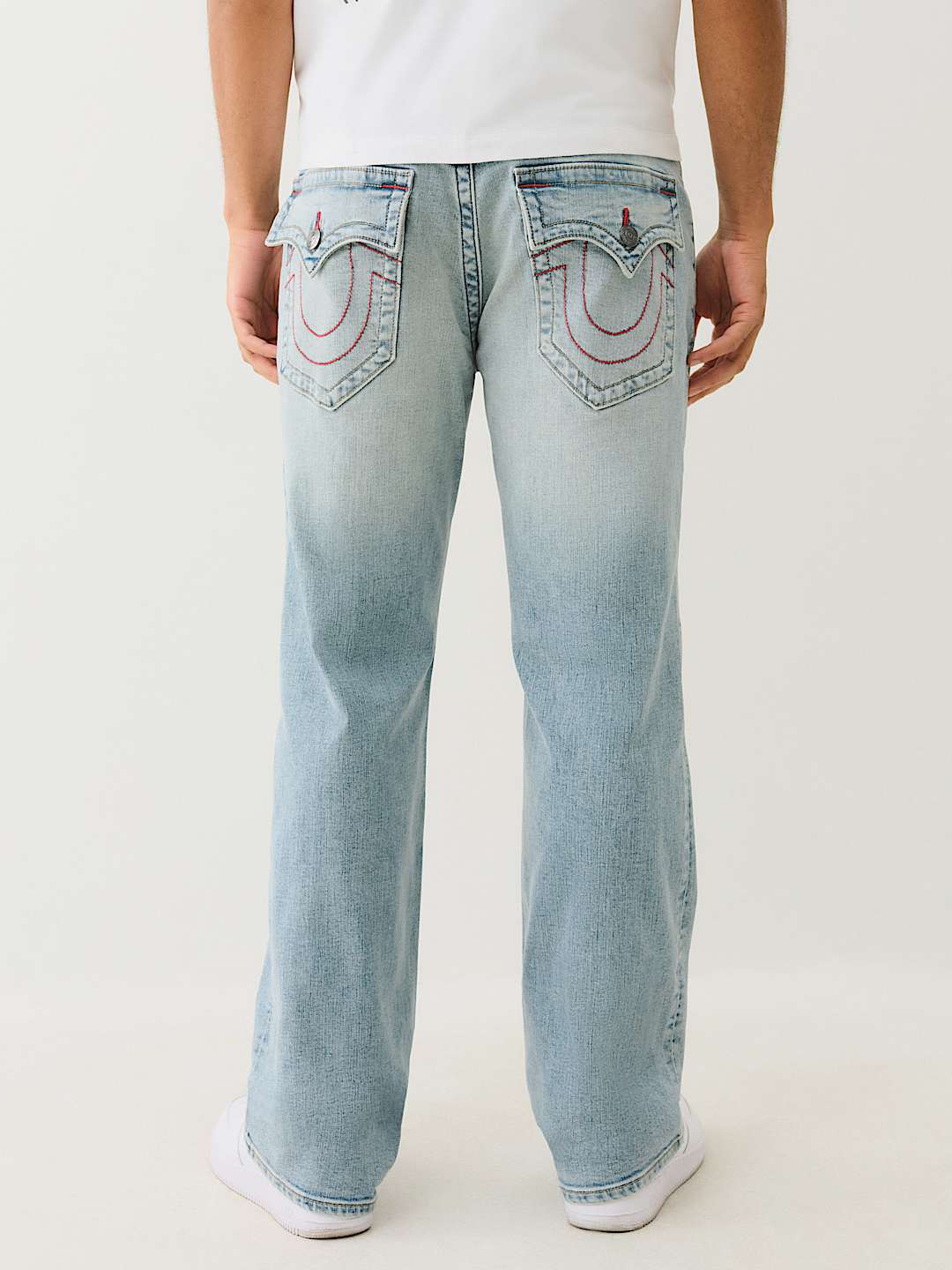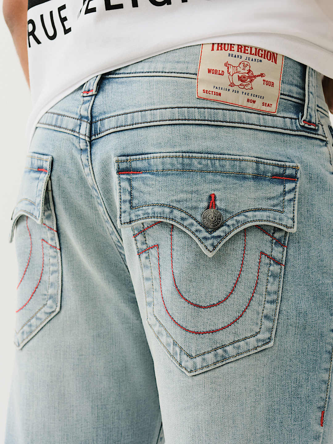 Go from day to night in the Billy Bootcut Jean. Crafted in a classic light wash, this pair of jeans features a zip fly, belt loops, whiskering, and a 34” inseam. Complete with single needle stitching and red horseshoe detailing on the back flap pockets.