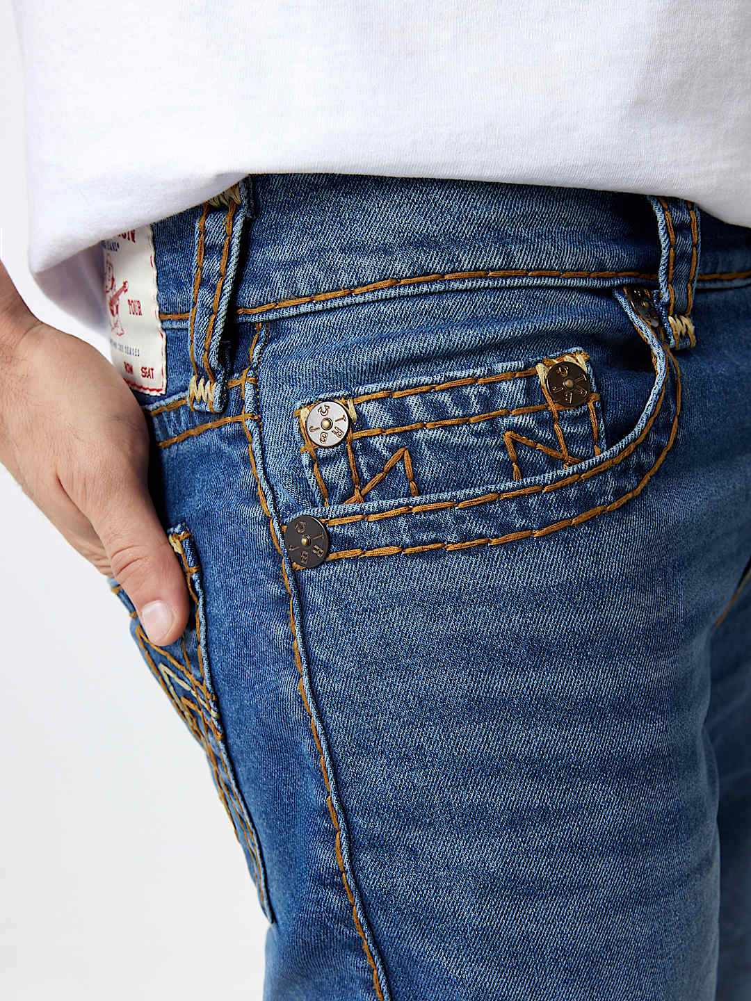Show some extra True love with the Billy Triple Horseshoe Super T Bootcut Jean. Crafted in a dark wash, this pair of bootcut jeans feature a zip fly, belt loops, whiskering, and five pocket construction. Finished with Super T stitching and triple horseshoe detailing on the back pockets.