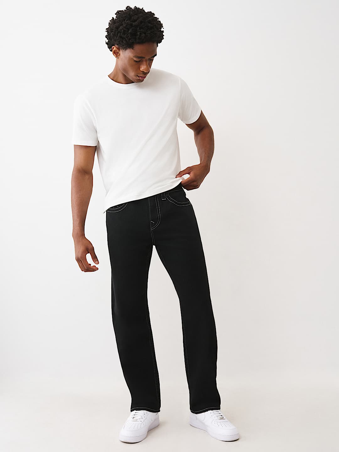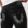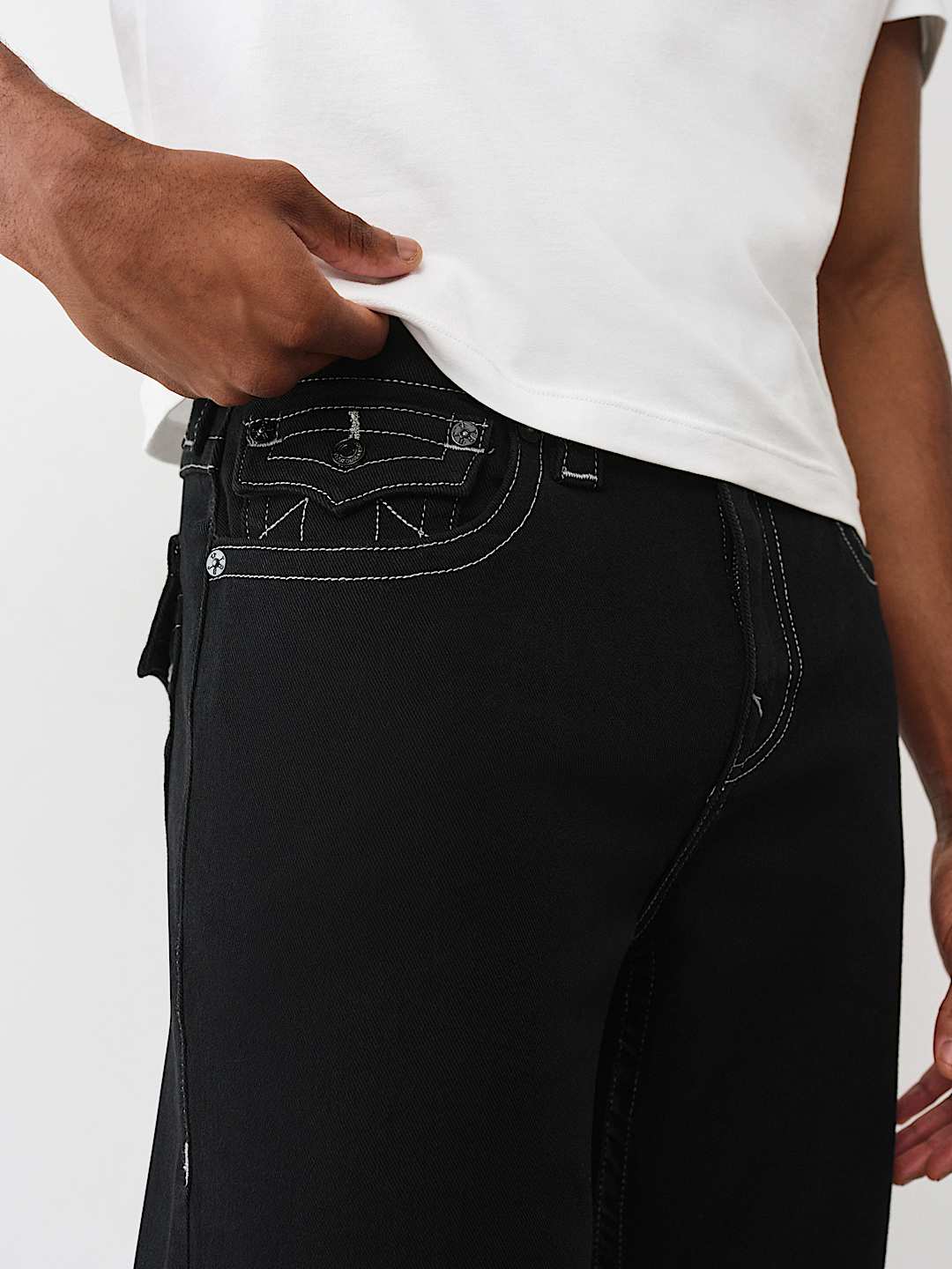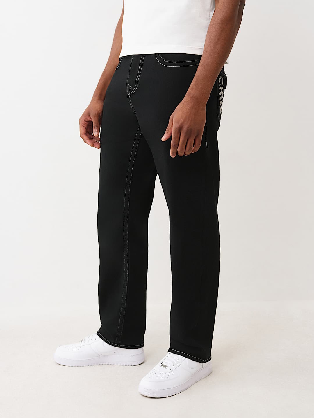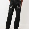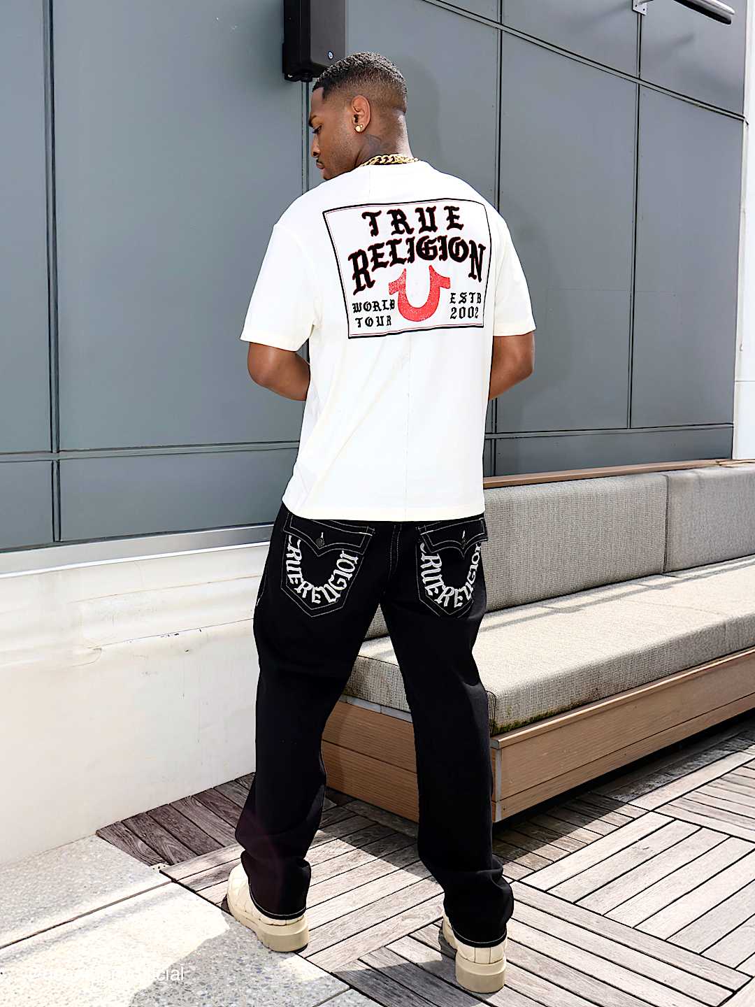 The Bobby Baggy Jean 32” keeps it loose and laid-back. With extra room in the seat and thigh, these jeans feature a dark wash, clean hardware, single-needle stitching, stitched horseshoes that spell out True on the back flap pockets.