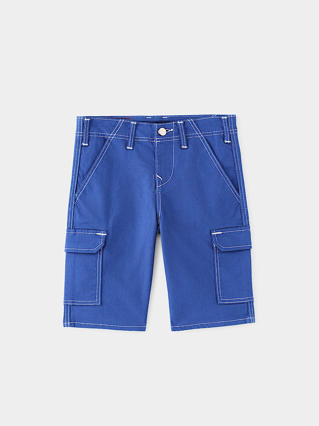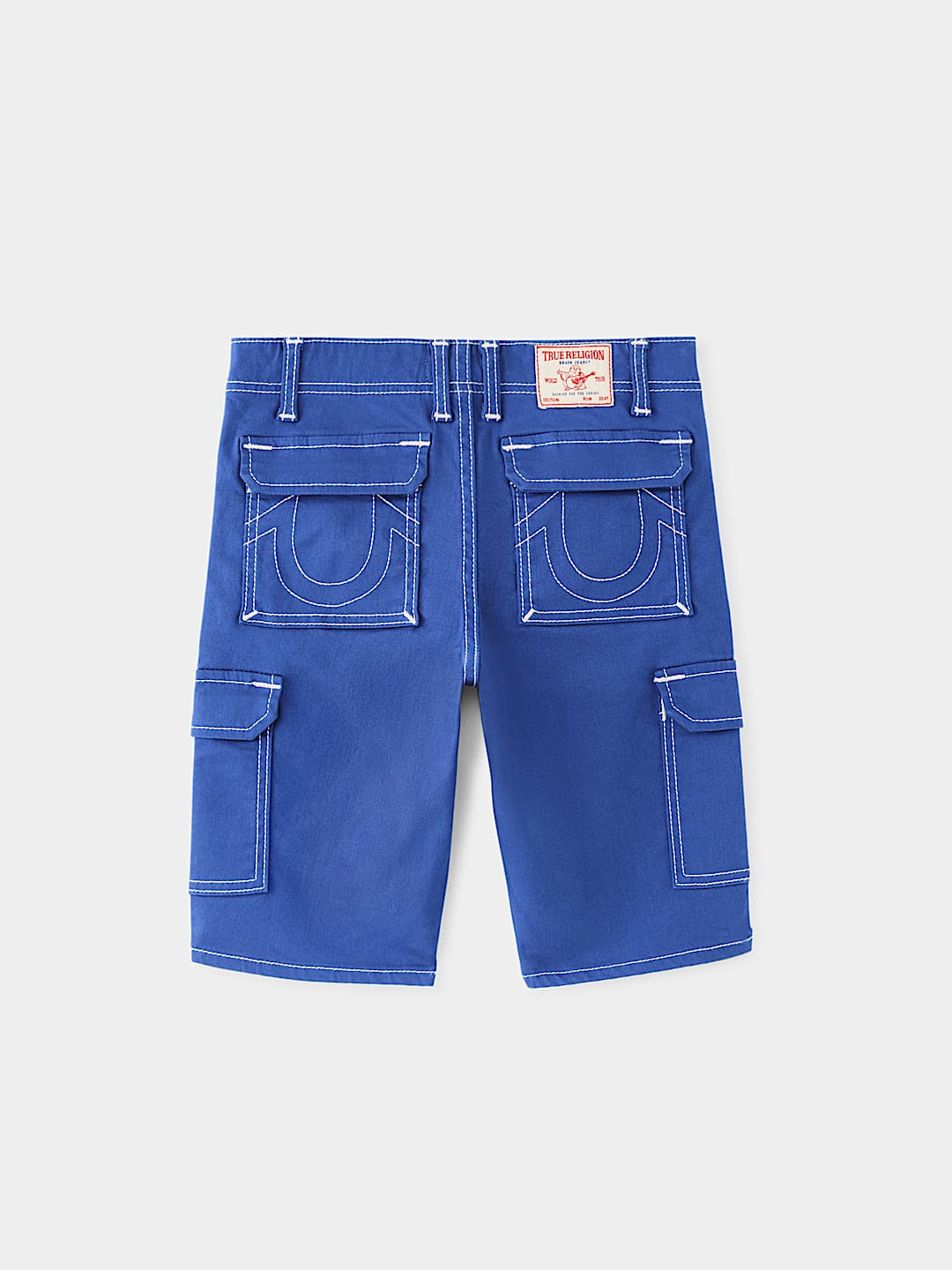 Let your little ones carry their essentials in style with the Kids – Boys Cargo Short. This pair of shorts feature a zip fly, belt loops, cargo pockets with slanted front pockets. Finished with contrast single needle stitching and horseshoe detailing on the back flap pockets.