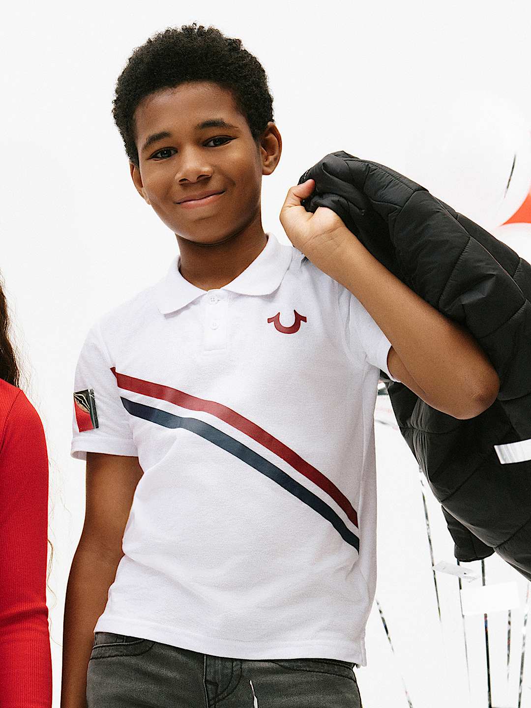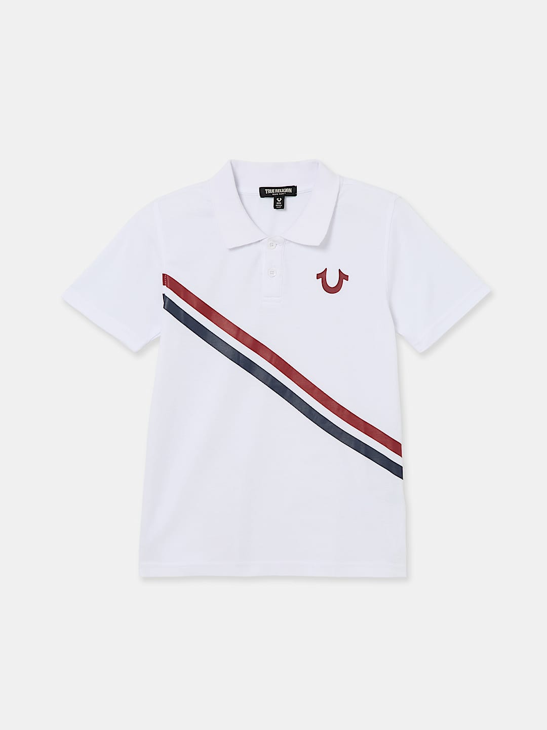 The Kids – Boys Horseshoe Striped Polo Shirt is perfect for school days. Crafted from a cozy cotton fabrication this polo features a basic collar, half-button placket, and short sleeves. Finished with red and blue stripes and a horseshoe logo.
