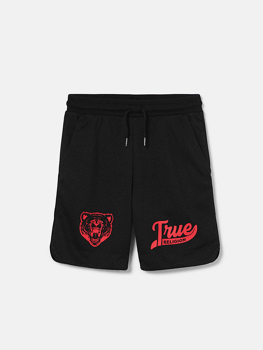 The Kids – Boys Logo Mesh Short is a must-have for sports and playing outside. Crafted in a breathable mesh fabric, these baggy shorts feature a drawstring waistband, slanted front pockets, and a Designer Brand logo and bear graphic.