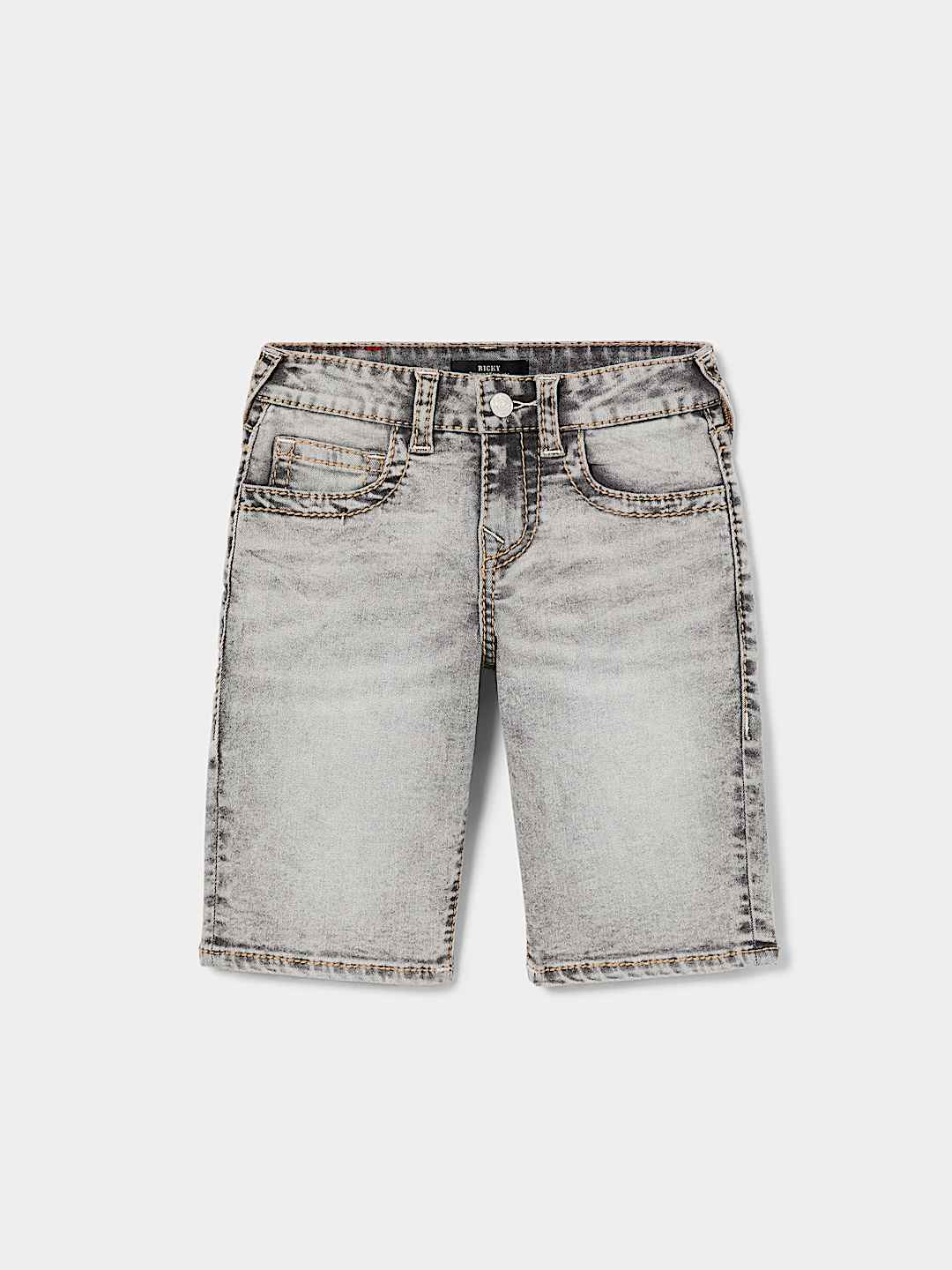 The Kids – Ricky Big T Short is a must-have for warm-weather days. Crafted in a vintage acid wash, these shorts feature a zip fly, belt loops, and a five-pocket construction. Complete with Big T stitching and horseshoe detailing on the back pockets.
