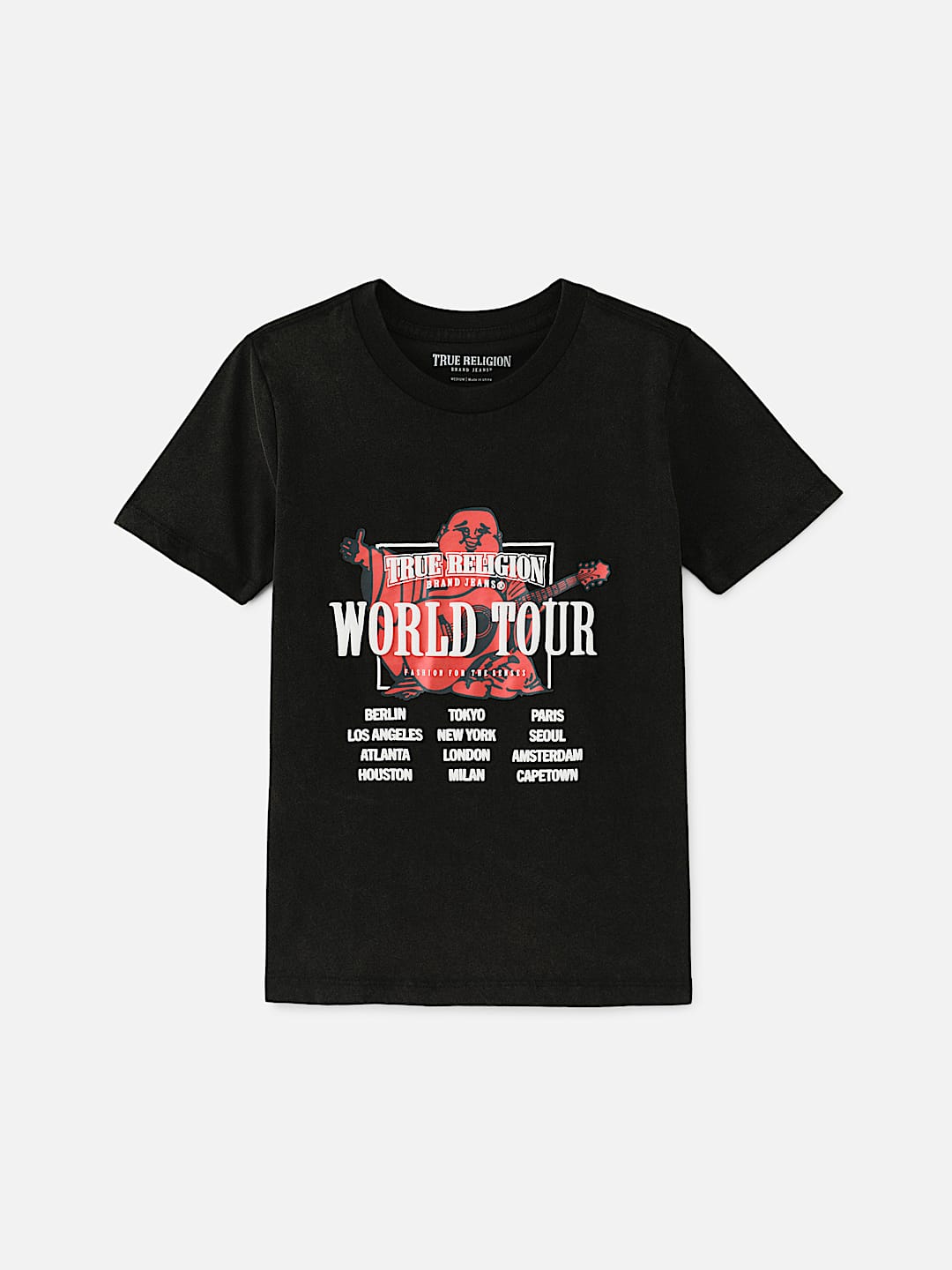 The Kids – Boys World Tour Tee is perfect for school days and playdates. This 100% cotton tee features a crew neck, short sleeves, and our iconic World Tour Buddha logo.