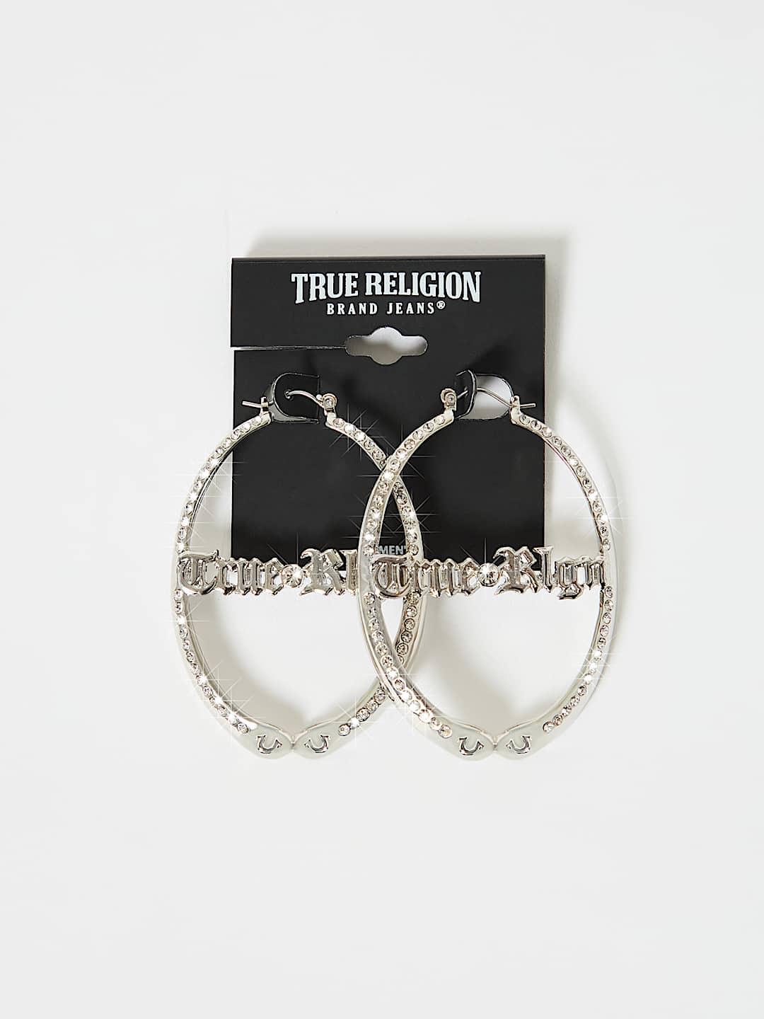 CRYSTAL HORSESHOE HOOP EARRINGS – Dark Grey | Designer Brand