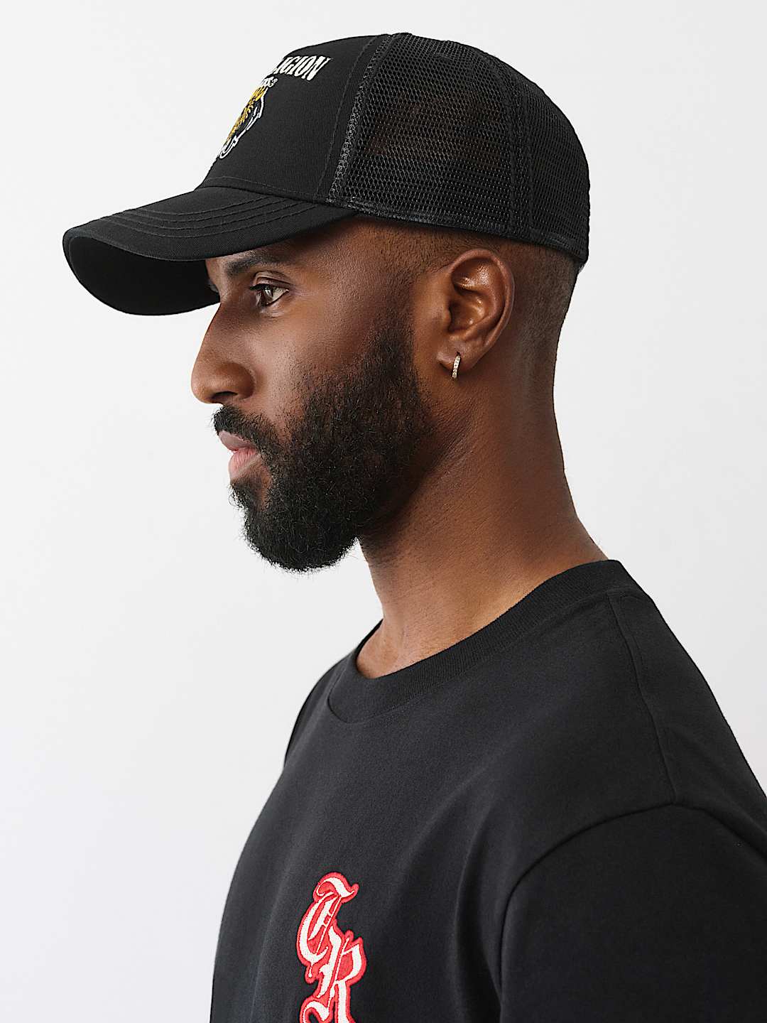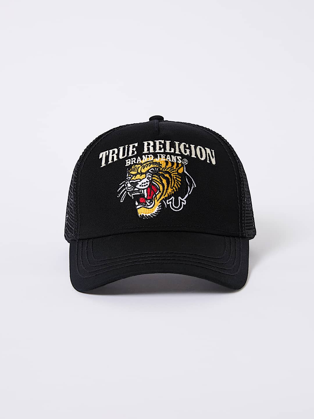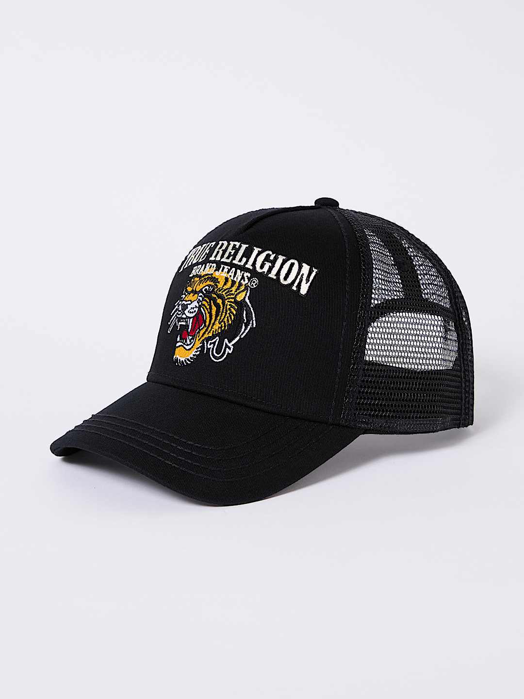 EMBROIDERED TIGER TRUCKER HAT – Black | Designer Brand