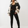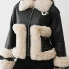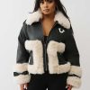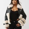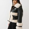 The Faux Leather Biker Jacket is too glam to be ignored. Relaxed, and crafted in a boxy fit, this jacket makes a statement with oversized fur trim throughout and is finished with a zip-front closure, snap patch pockets, and adjustable buckles on the sleeves for some added edge.
