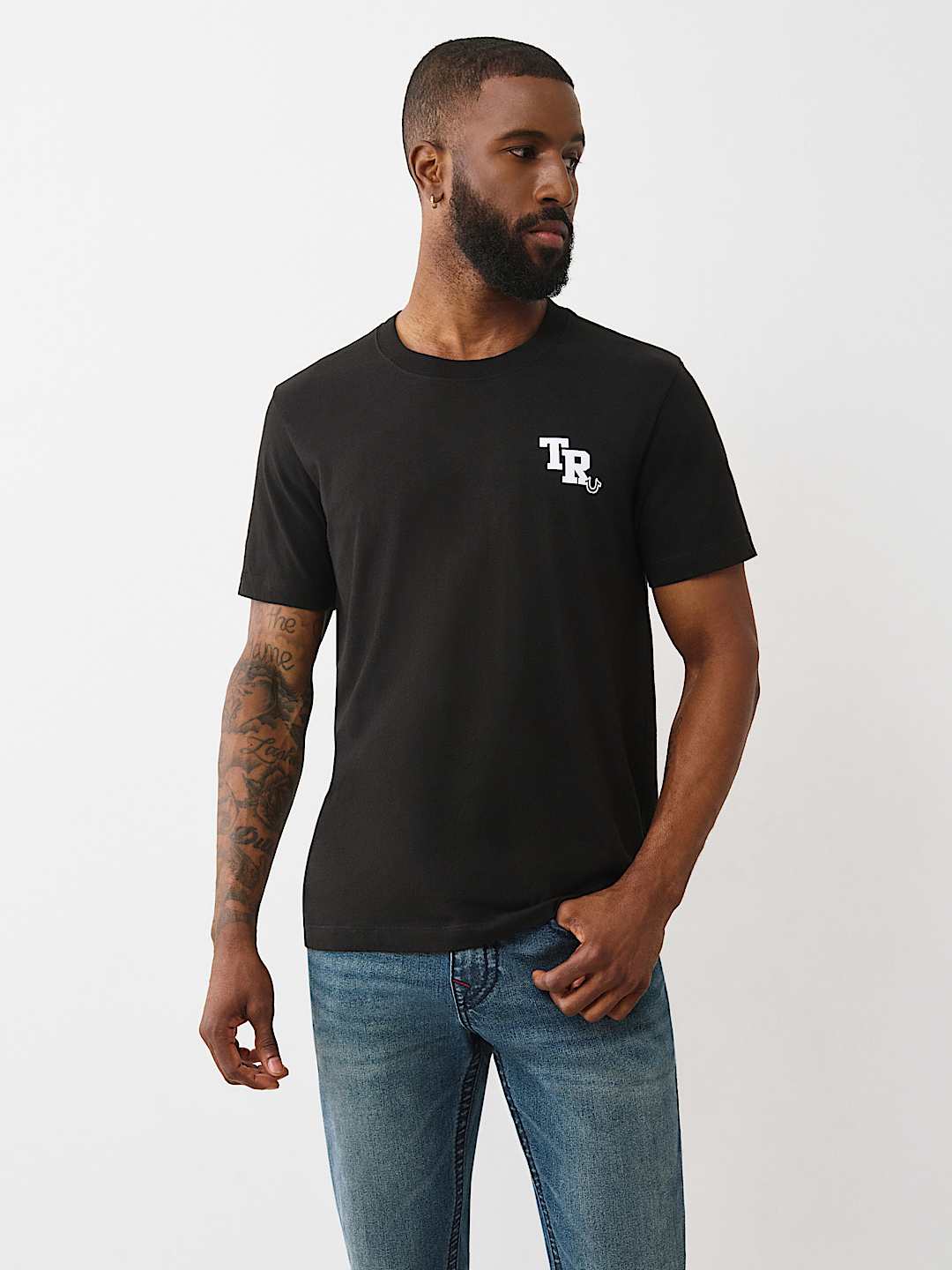 Feel the texture, rep the brand with the Flocked Logo Tee. Crafted from 100% cotton, this short-sleeve tee features raised flocked initials on the chest and a Buddha emblem graphic across the back.