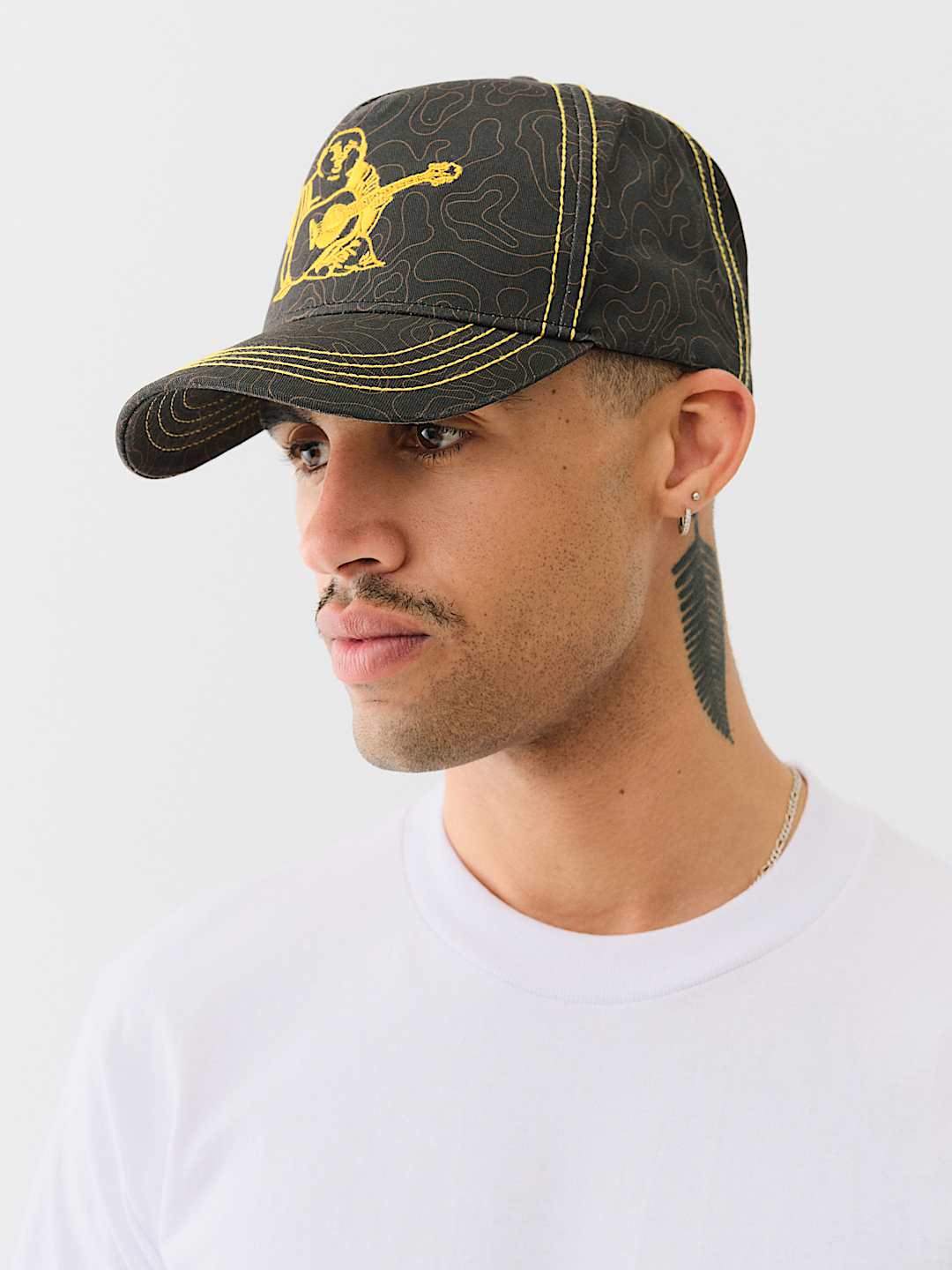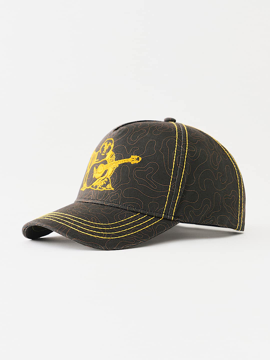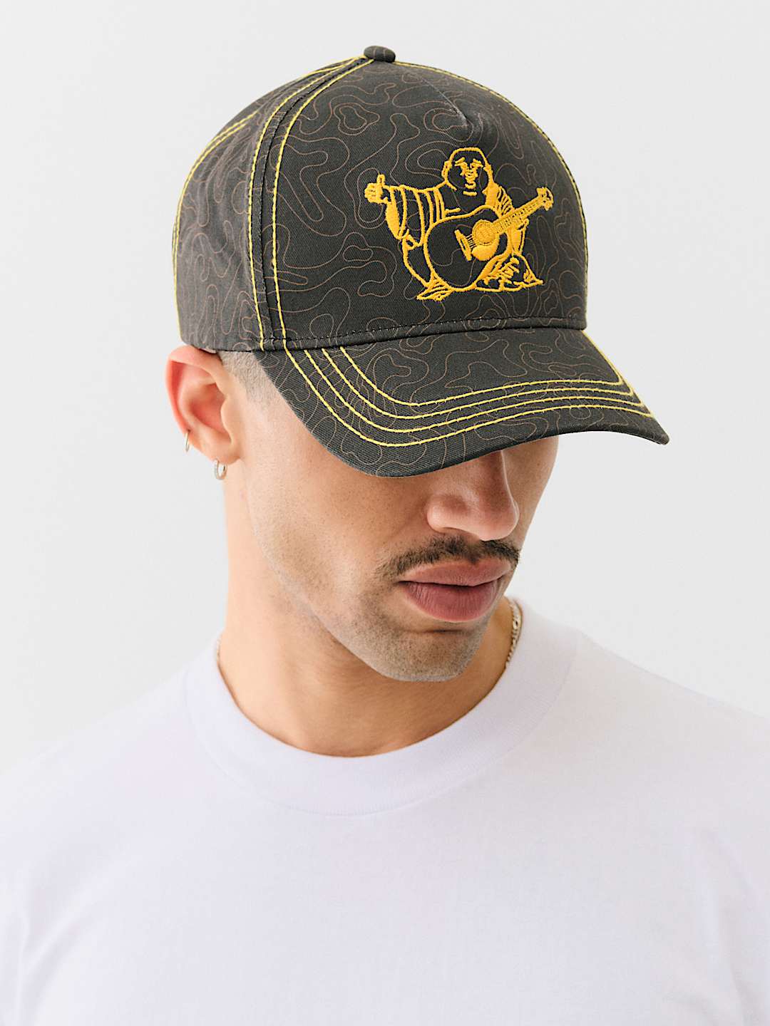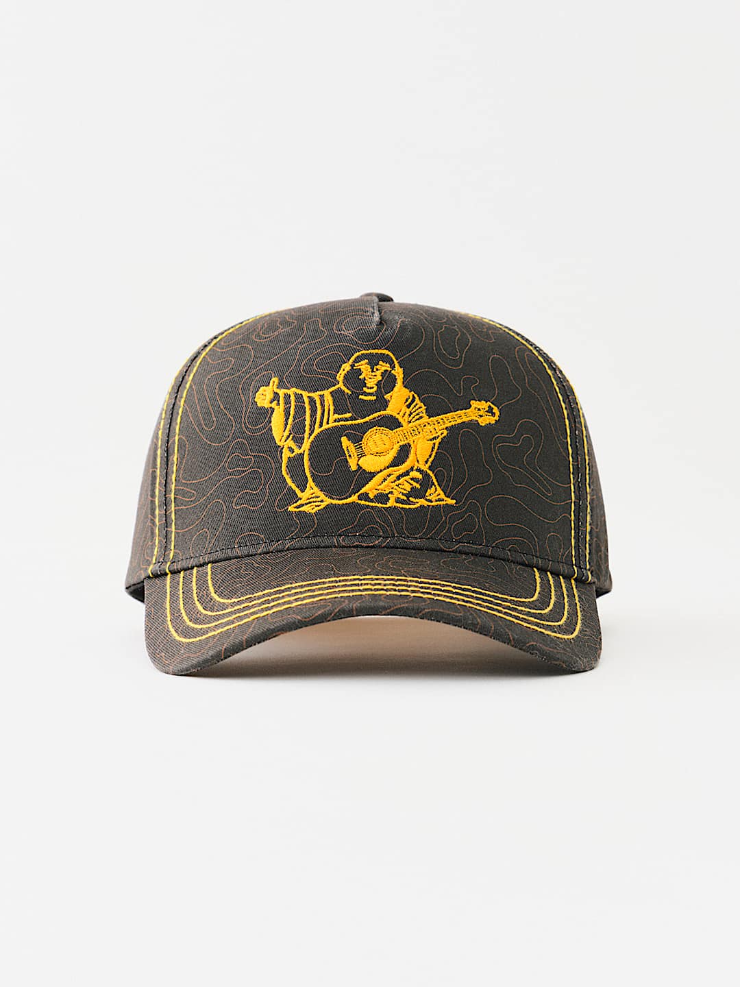 The Groovy Buddha Hat is the perfect finishing touch to your True fit. This cap features a top button, curved brim, and adjustable back strap. Complete with groovy line designs throughout and an embroidered Buddha logo.