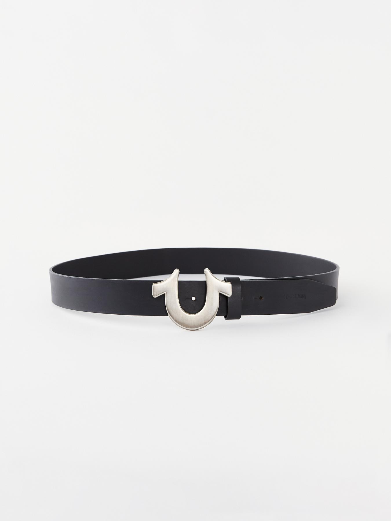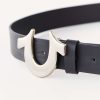 HORSESHOE BUCKLE BELT – Black | Designer Brand