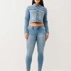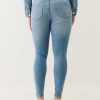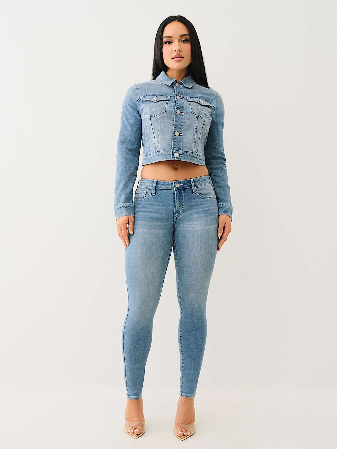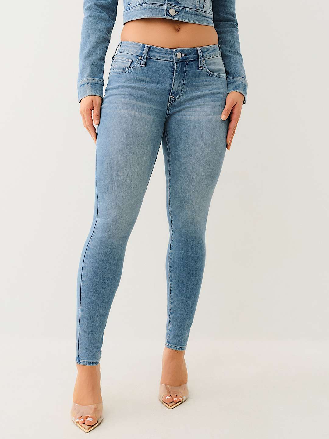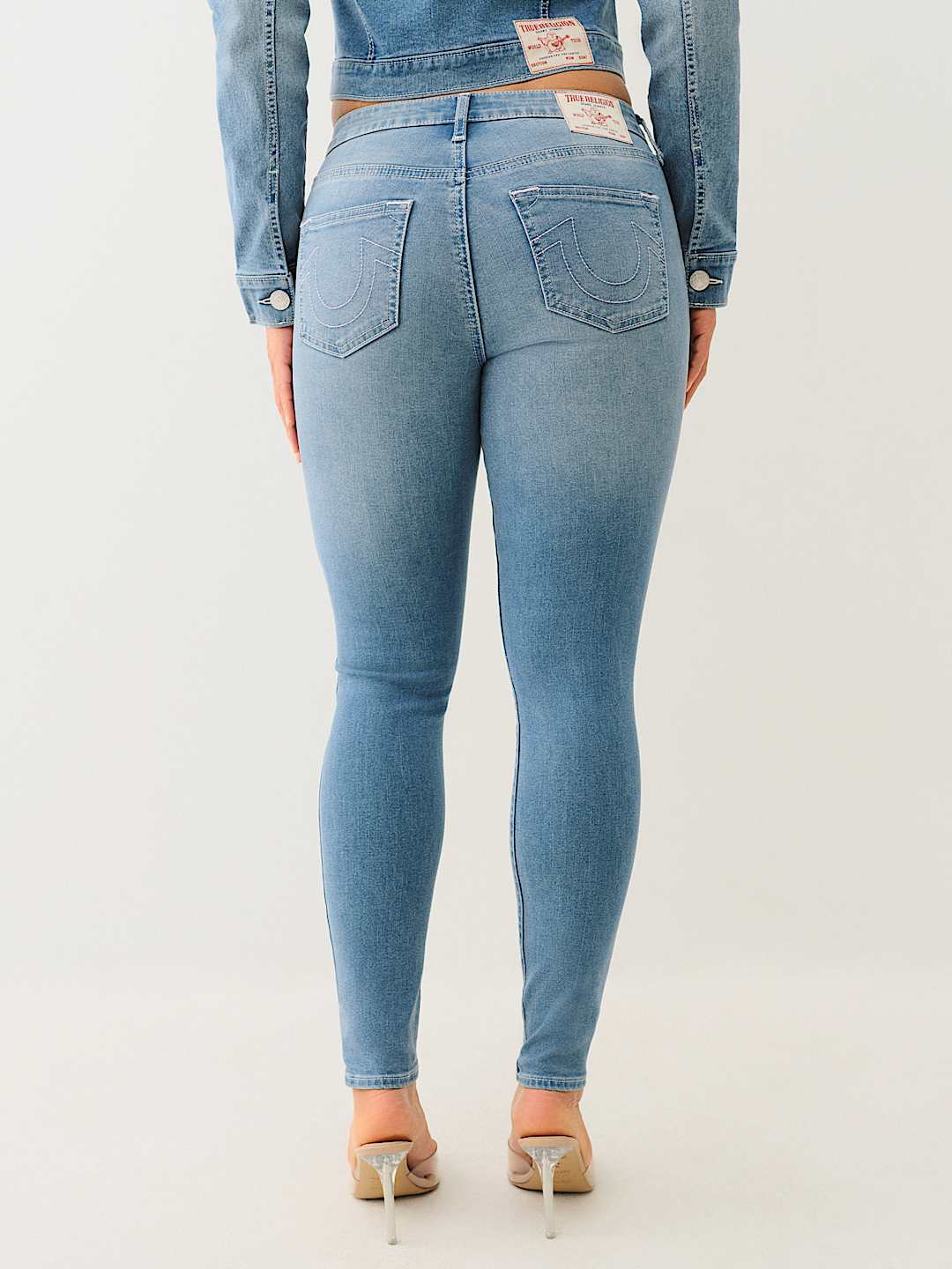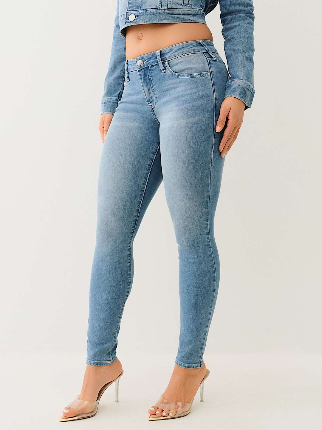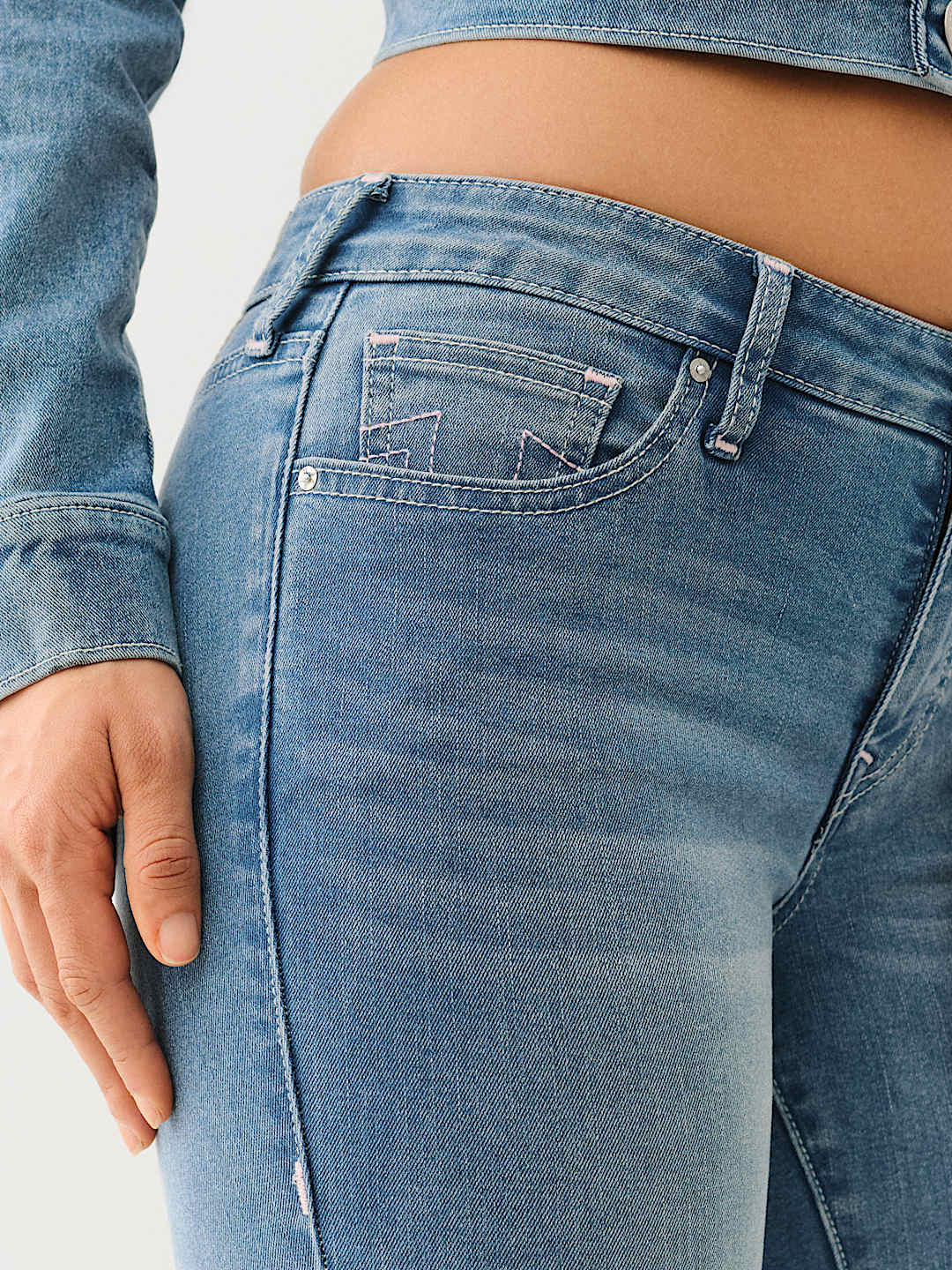 Go from day to night in the Jennie Mid Rise Curvy Skinny Jean. Crafted in a medium wash, this pair of women’s jeans feature a zip fly, belt loops, whiskering, and a mid-rise waist. Finished with pink single needle stitching and horseshoe detailing on the back pockets.