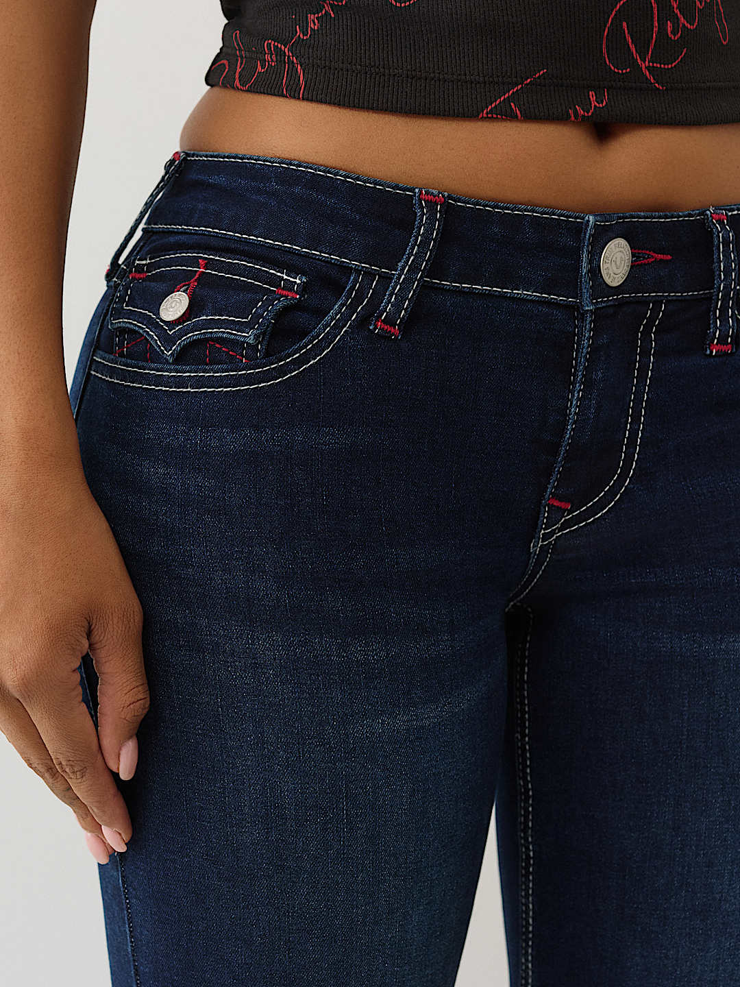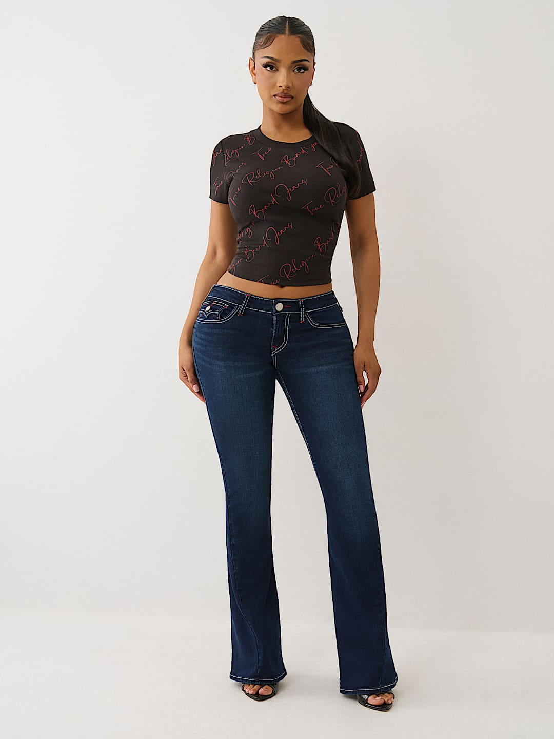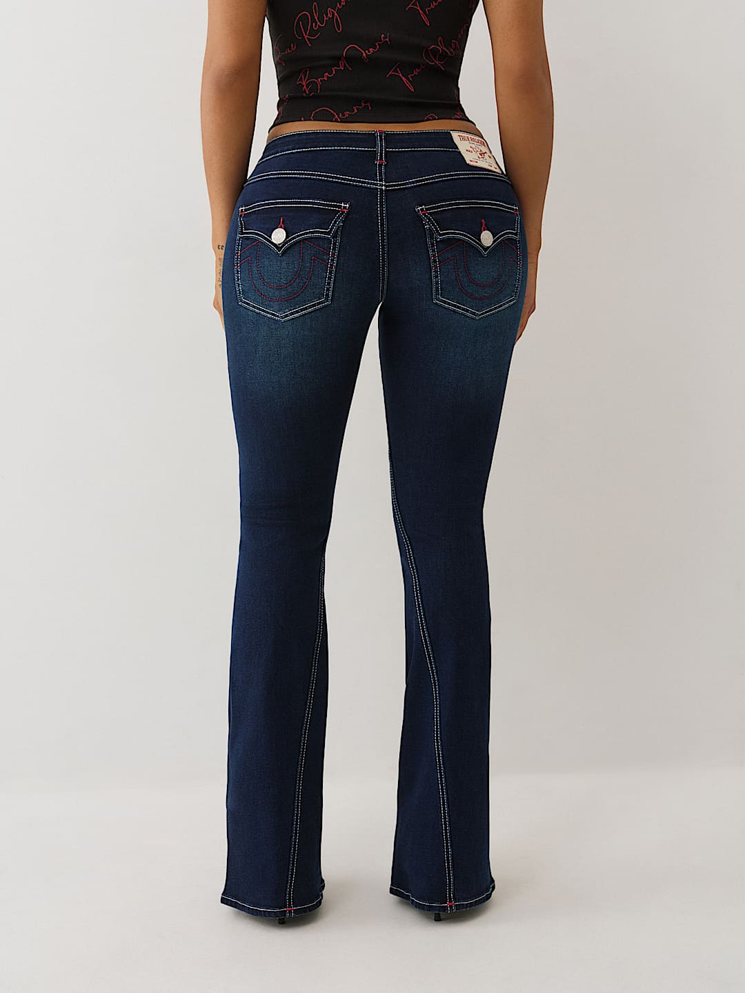 JOEY LOW RISE FLARE JEAN – Dark Mahogany Wood Wash | Designer Brand