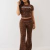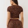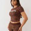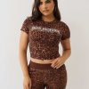 The Leopard Crystal Logo Baby Tee is glammed out and designed to turn heads. Featuring a classic crew neck and a branded crystal logo on the front, this cropped baby tee brings fierce attitude to every outfit.