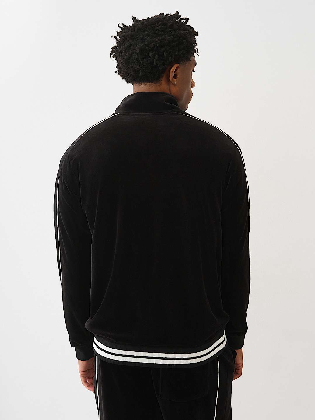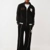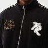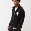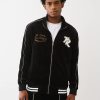 Move like an all-star in the Logo Patch Velour Track Jacket. This zip-front style features contrast stitching, a funnel-neck collar, varsity-striped trim, side pockets, and embroidered branded script with a chenille patch on the front.