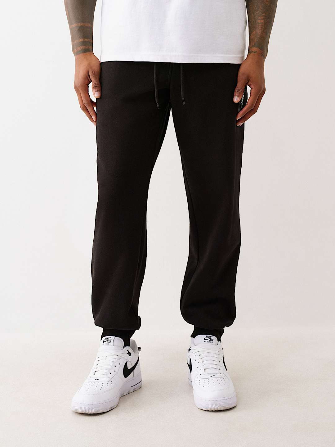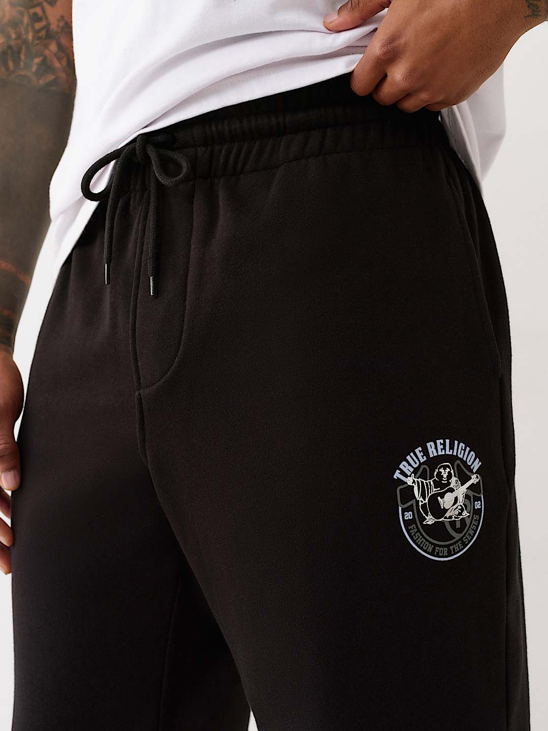 The Metallic Buddha Jogger is perfect for relaxing at home or running errands. Fleece-lined and crafted from a soft cotton blend, this jogger features a drawstring waistband, mock fly, and slanted front pockets. Complete with a metallic Buddha logo on the front and horseshoe stitch detailing on the back patch pocket.