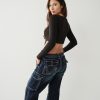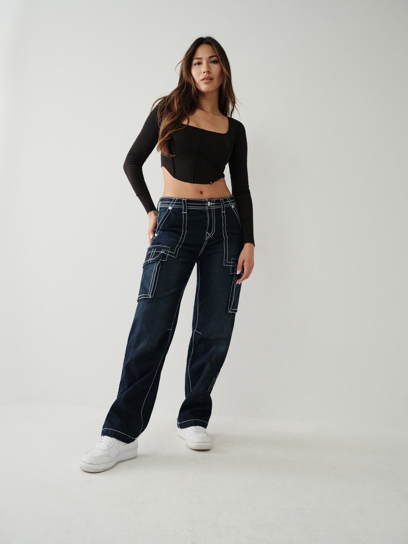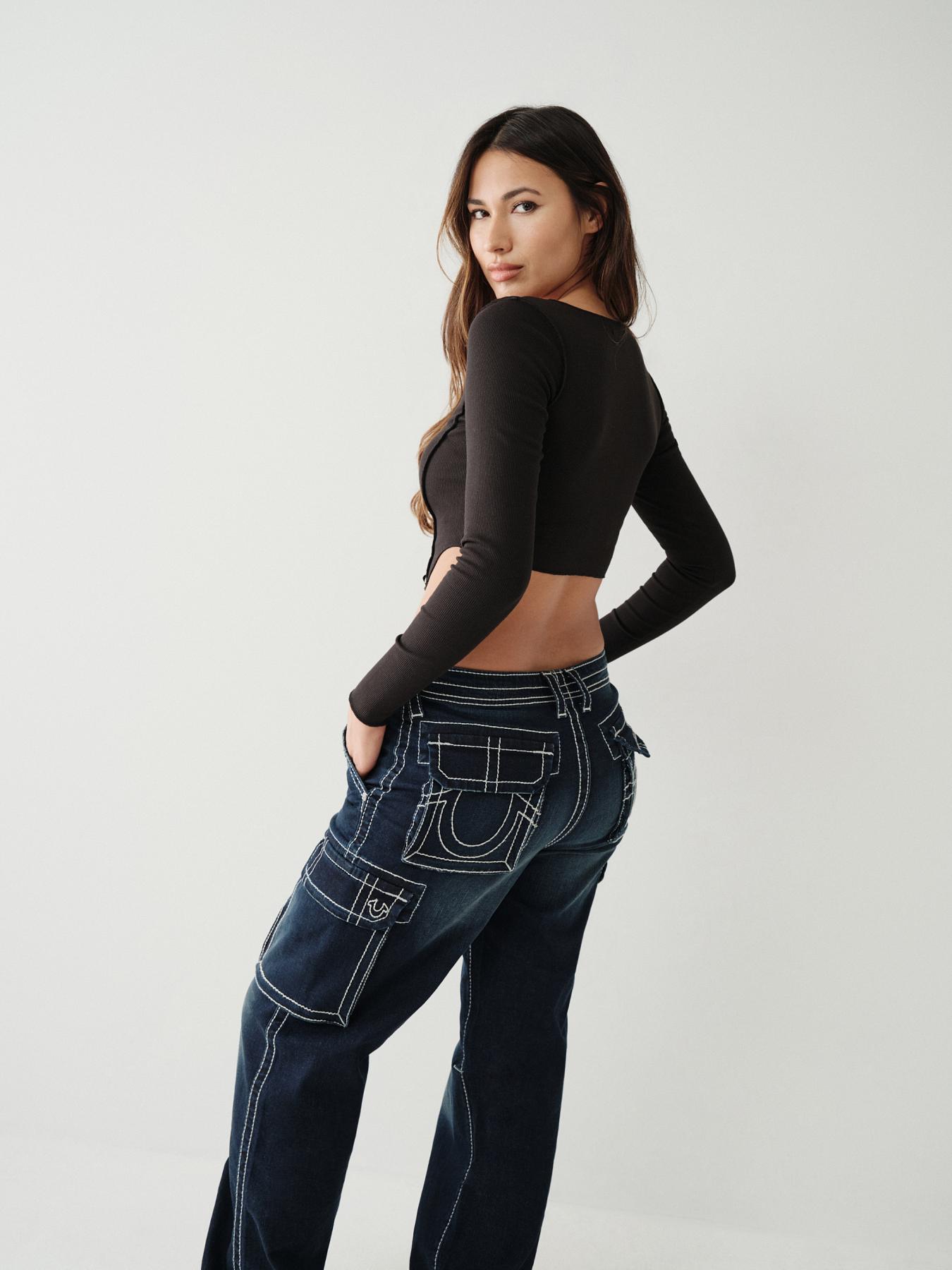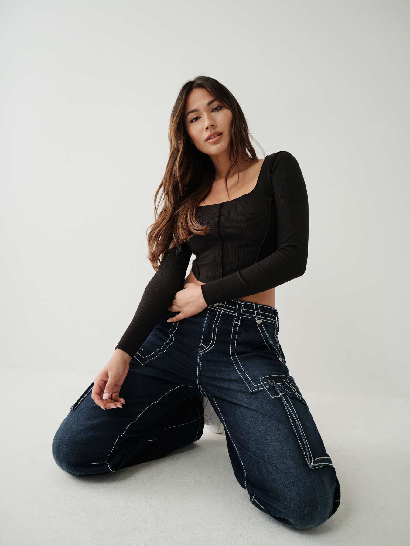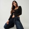 The Paneled Crop Top is day-to-night essential. This stretch rib long sleeve women's top features a squared scoop neckline and paneled construction. Finished with a curved cropped hem.