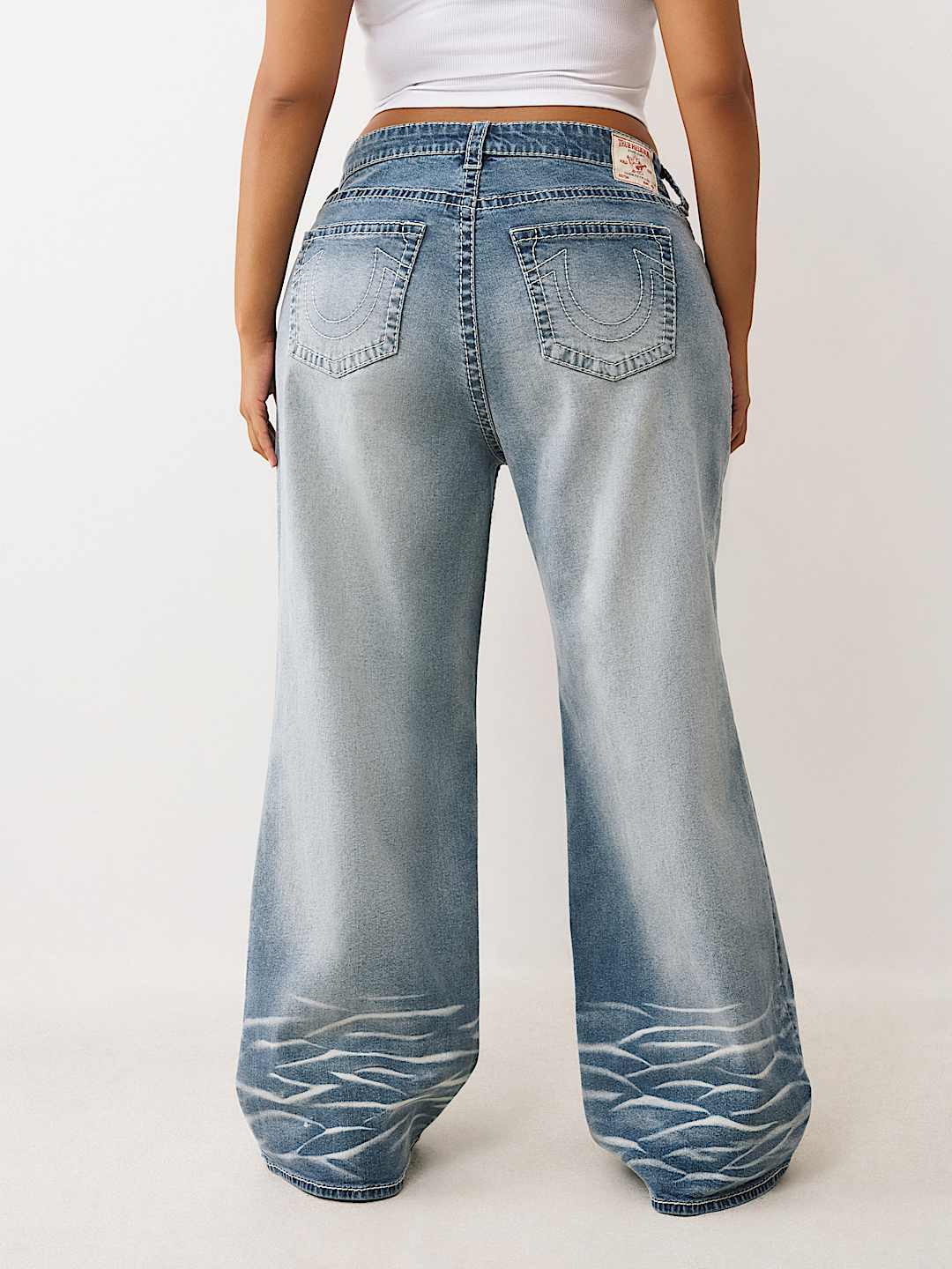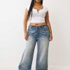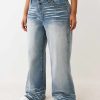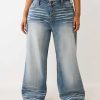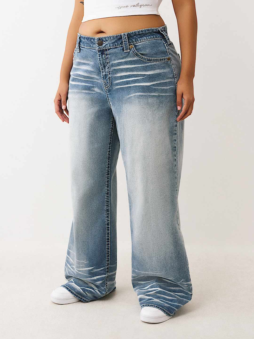 The Plus Bobbi Big T Baggy Jean stays loose and cute. Crafted with exaggerated whiskering throughout, these jeans feature a vintage overdye wash and stitched horseshoes on the back spade pockets.