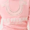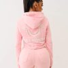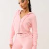 Edge up your essentials with the Raw Edge Big T Shrunken Hoodie. Fleece-lined and crafted in a soft cotton blend, this hoodie features a zip-up front, raw-edge hems, rivet detailing on the front pockets, and Big T stitching. Complete with a crystal-detailed horseshoe applique and a puff print Designer Brand logo.