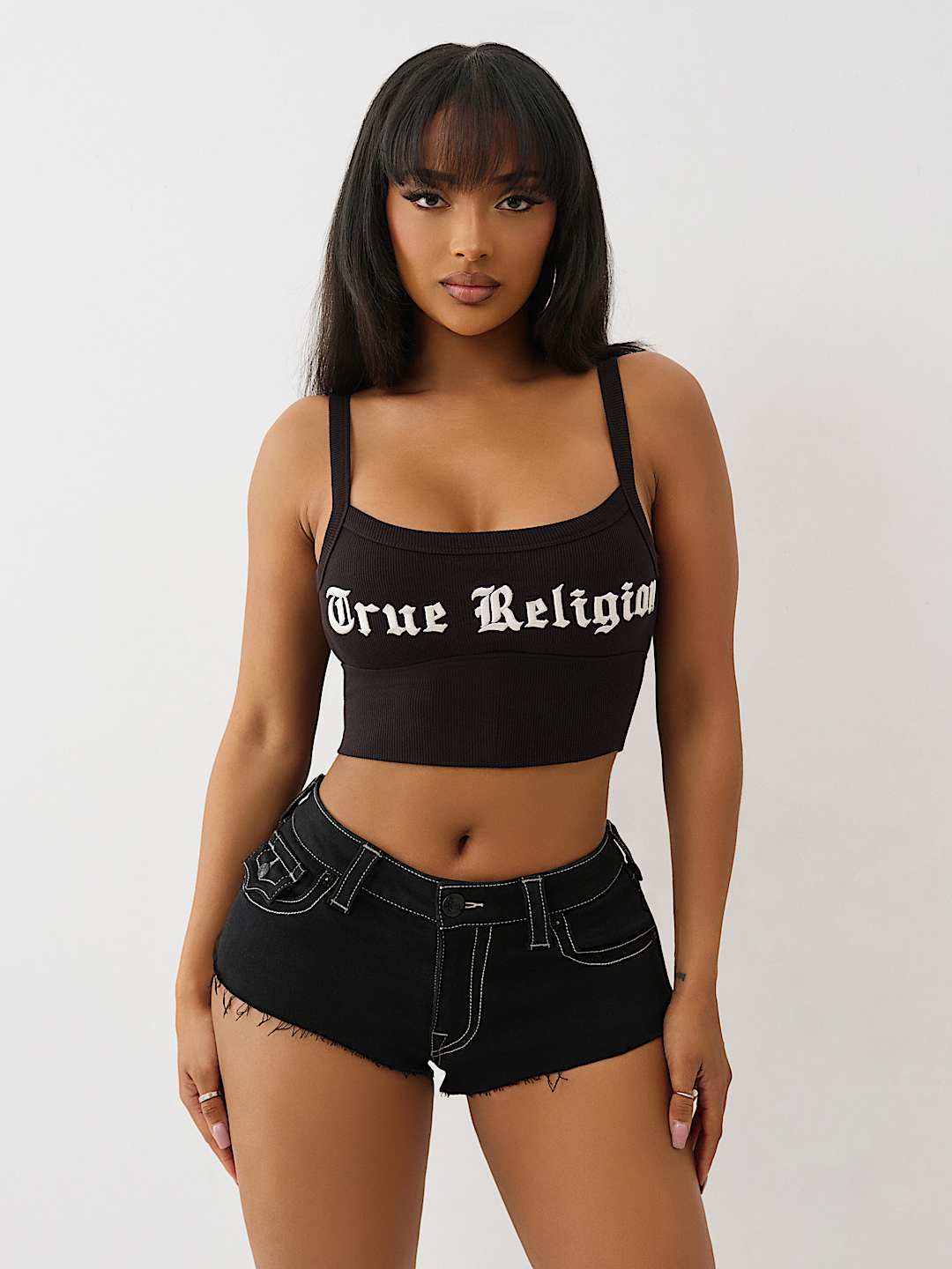 The Reversible Ribbed Tank Top knows that more is always better. Crafted in a waist-hugging cropped fit, this reversible ribbed tank features a Designer Brand graphic on the front and back, delivering attitude at every angle.