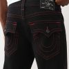 The Ricky Flap Straight Jean is your new go-to jean. Relaxed throughout the thigh and leg, these dark-washed jeans feature bold red single-needle stitching for contrast, silver-toned hardware, and stitched horseshoes on the back flap pockets.