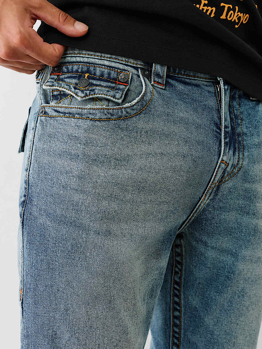 Go from day to night in the Ricky Flap Straight Jean. Crafted in a versatile medium wash, this pair features a 34” inseam, zip fly, belt loops, and brass hardware. Complete with single needle stitching in our original colorway and horseshoe detailing on the back flap pockets.