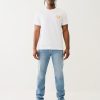 The Ricky Flap Straight Jean is the quintessential everyday denim. Crafted in a medium wash, this pair of men’s jeans features a zip fly, belt loops, whiskering, and silver hardware. Finished with single needle stitching and orange horseshoe detailing on the back flap pockets.