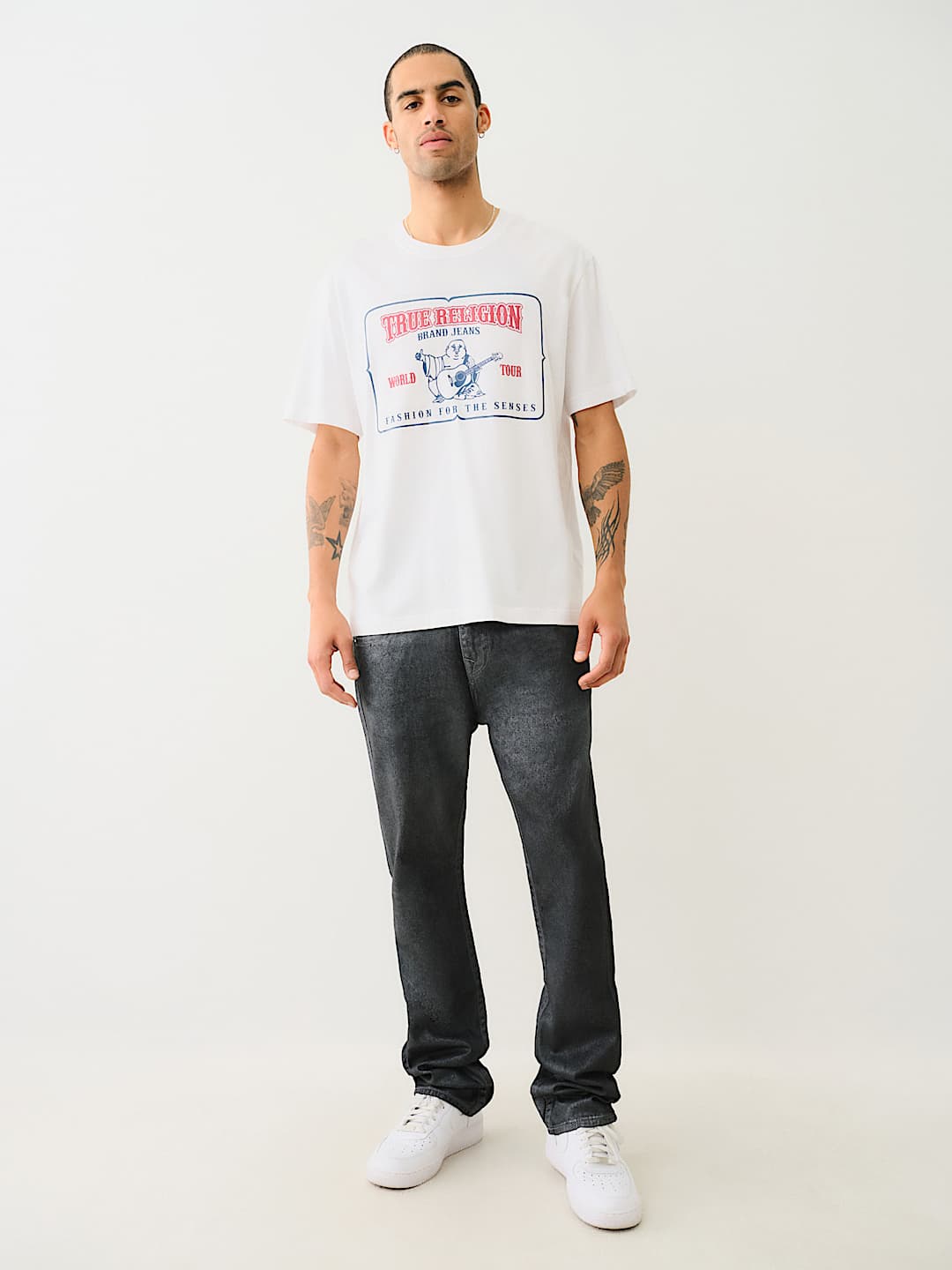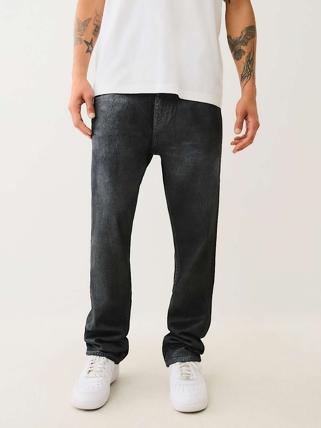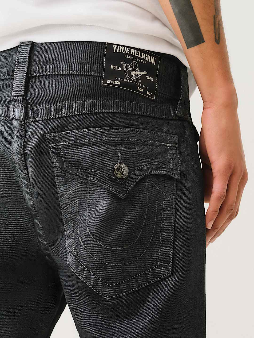 The Ricky Super T Metallic Straight Jean is the perfect option for a night out. Crafted in a metallic-coated black rinse, this pair of men’s jeans feature a zip fly, belt loops, and tonal hardware. Finished with Super T stitching and horseshoe detailing on the back flap pockets.