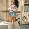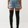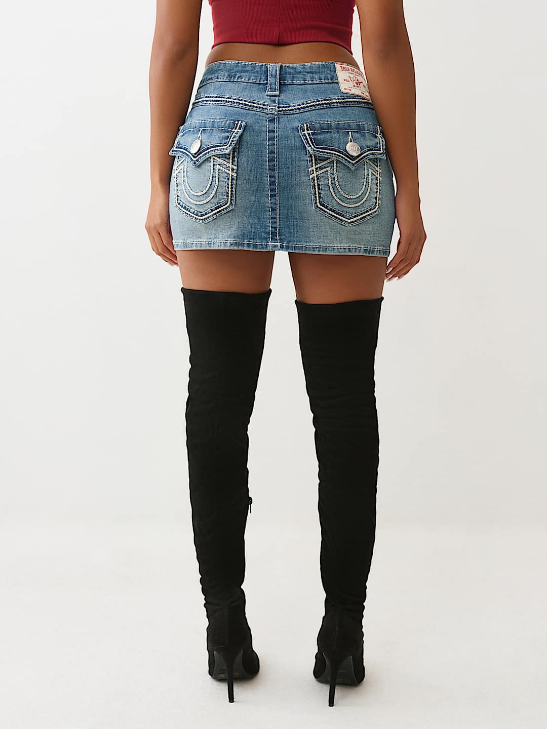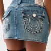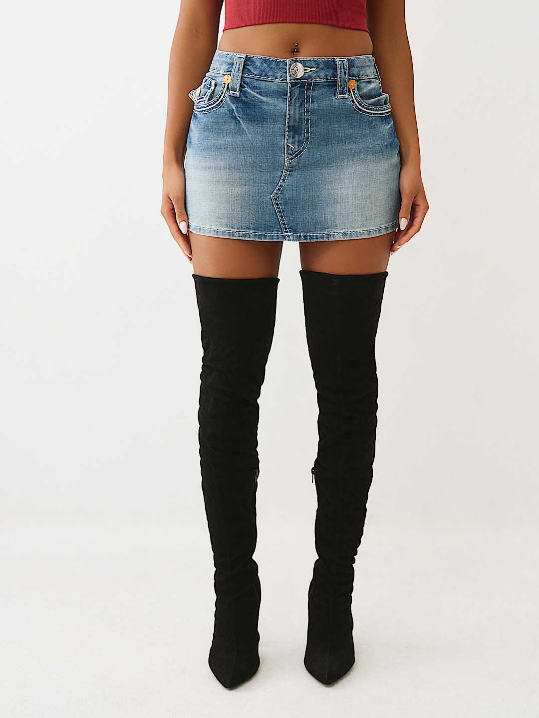 The Sadie Rope Stitch Denim Skirt is a baddie essential. Designed with a faded wash, this denim mini features bold rope stitch detailing, dual-toned hardware, a zigzag front seam, and is finished with our iconic horseshoes on the back flap pockets.