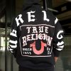 The Script Logo Zip Hoodie is a fire flex. With a drawstring hood and split kangaroo pockets, it rocks an old-script logo on the chest, a boxed logo on the back, and bold lettering cuff to cuff on the sleeves.