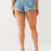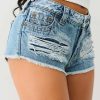 The Super Distressed Mid Rise Shorts are a must-have for a bold night-out look. Crafted in a vintage wash, these ultra-distressed short-shorts feature a zip fly, belt loops, mid-rise waist, and a frayed hem. Complete with single needle stitching and horseshoe detailing on the back pockets.