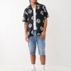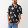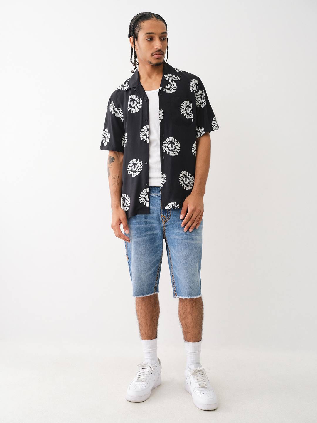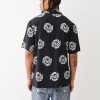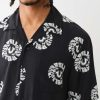 Elevate your summer style with our Swirl Logo Camp Collar Shirt. This woven men’s shirt boasts a distinctive notched camp collar and button-front closures, perfect for warm-weather days. With short sleeves for added comfort, it’s finished with an eye-catching allover Designer Brand text in a stylish swirl design, making it a standout piece for any occasion.