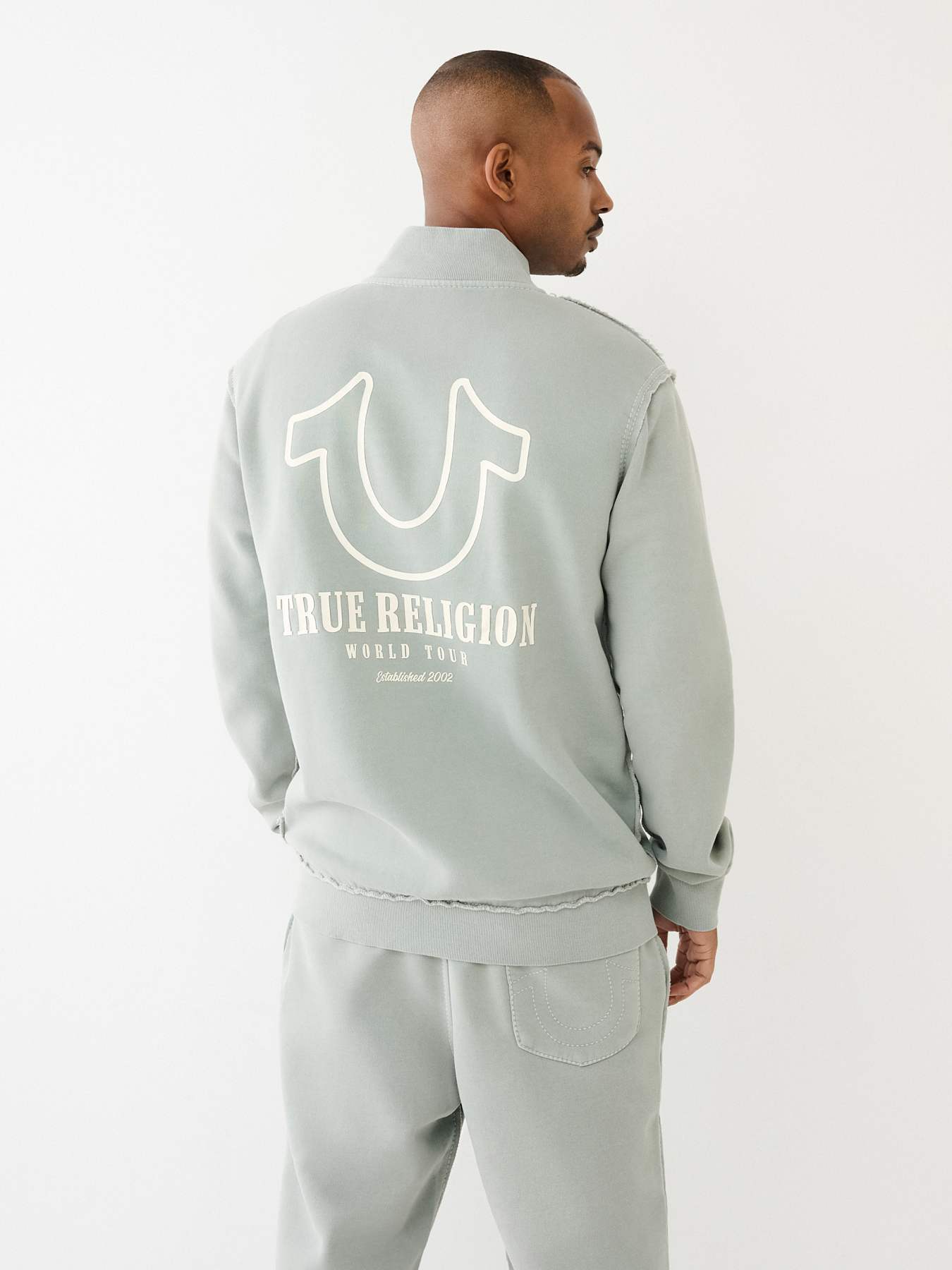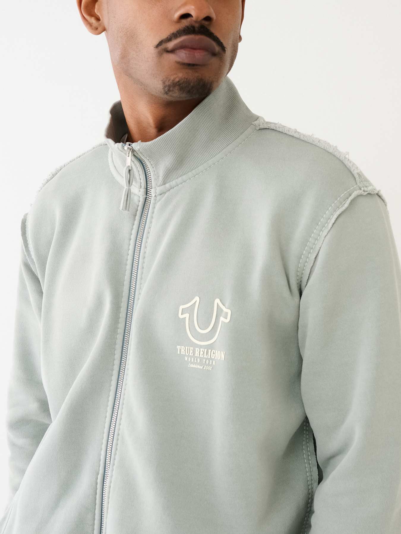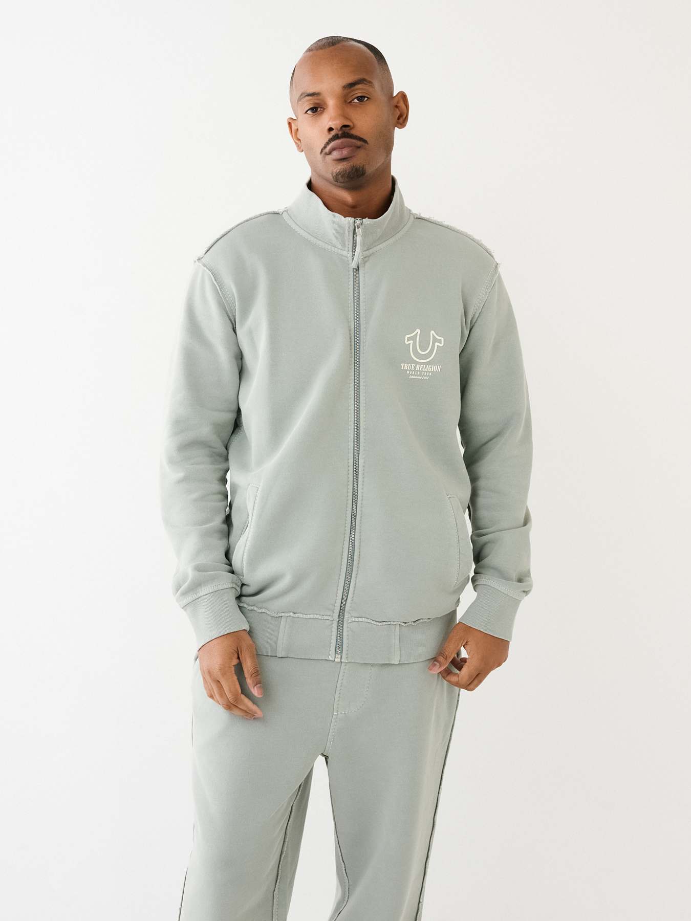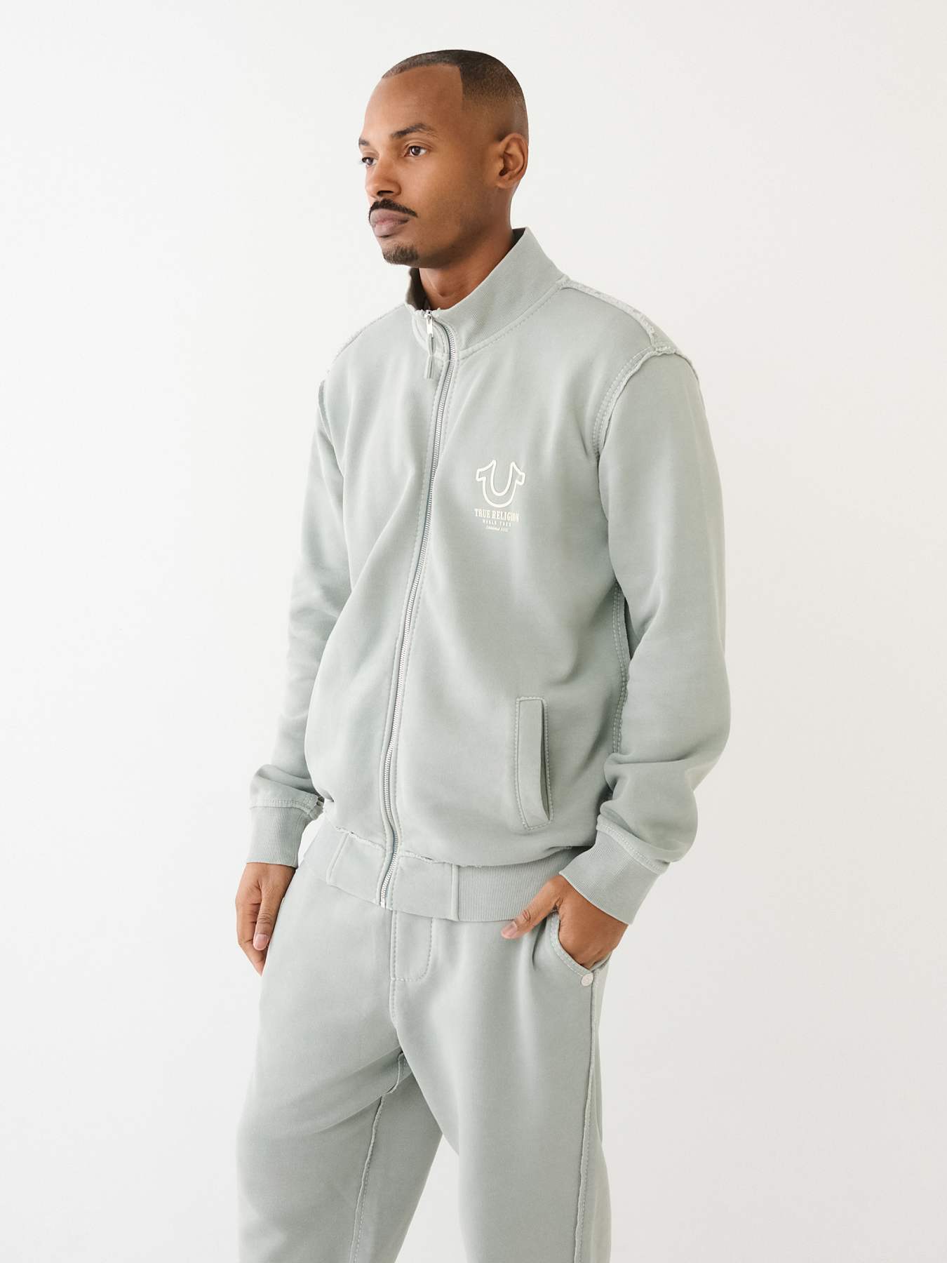 The TR Logo Big T Track Jacket is perfect for those days you want to comfy yet stylish. Crafted from a cotton-blend, this jacket features a zip-front closure, mock neck, slanted front pockets, and long sleeves. Finished with horseshoe and Designer Brand logos.