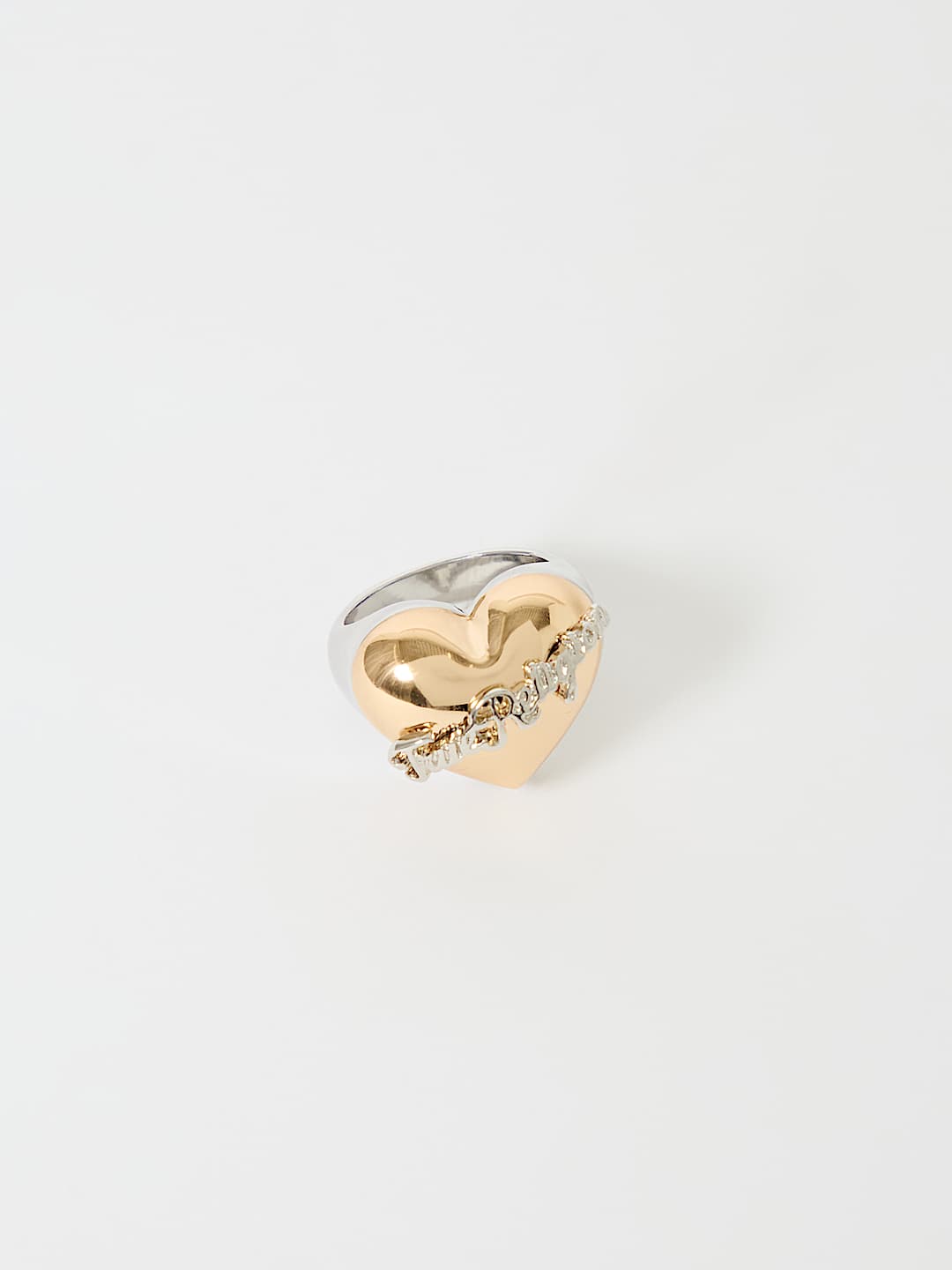 The Two-Toned Heart Ring is True love and style in one. This ring pairs a gleaming gold heart and our iconic branded logo with a silver band, creating a statement jewelry piece that’s sweet, bold, and unmistakably True.